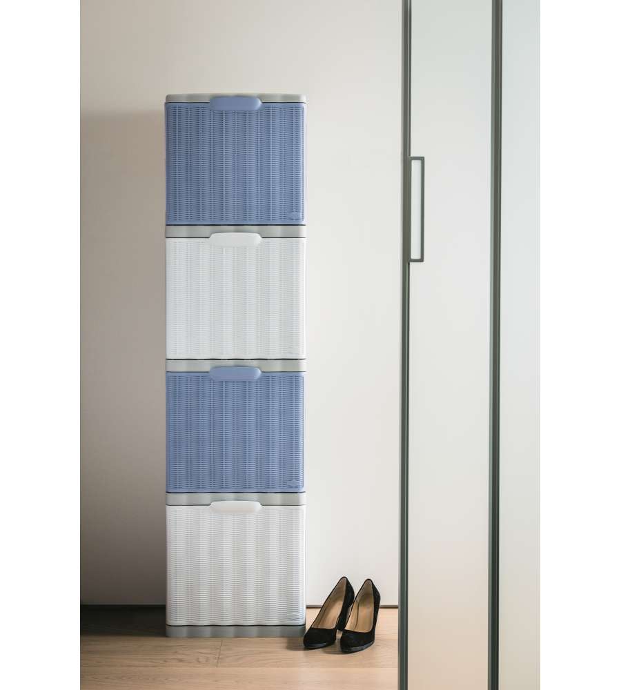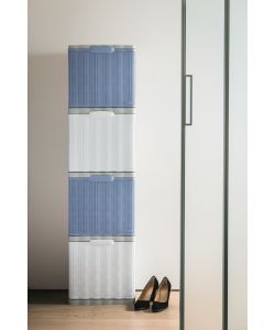 Scarpiera Elegance Bianca, componibile, con 1 anta a ribalta. Doppia profondità, decoro intreccio bianco. Dimensioni: 40 x 30 x 40 h cm. Materiale: polipropilene. Leggera (2,6 kg) e pratica.N° ante: