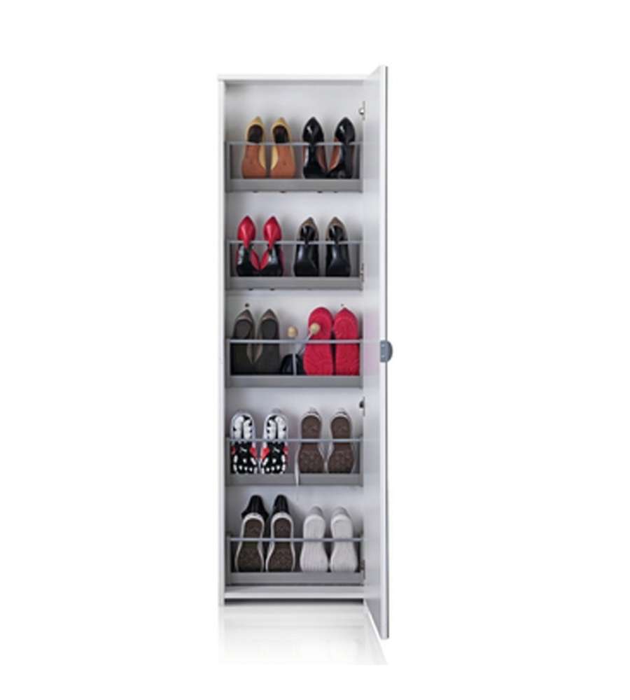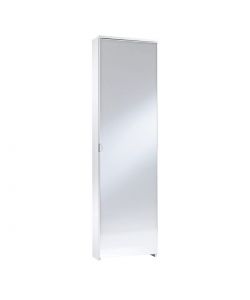 Scarpiera slim con anta a specchio, colore bianco, in melaminico. Dimensioni: 18 x 50 x 180 cm. Capacità: 10 paia di scarpe. Dotata di ferramenta per fissaggio a parete.Portata: