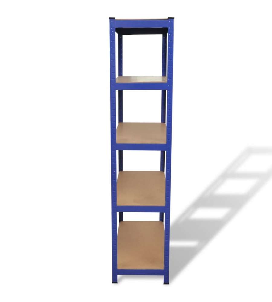 Colore: Blu Materiale: Acciaio con rivestimento a polvere + MDF Dimensioni: 90 x 40 x 180 cm (L x P x A) Peso: 15 kg Capacità di carico totale: 875 kg (175 kg per ripiano)Altro 1: