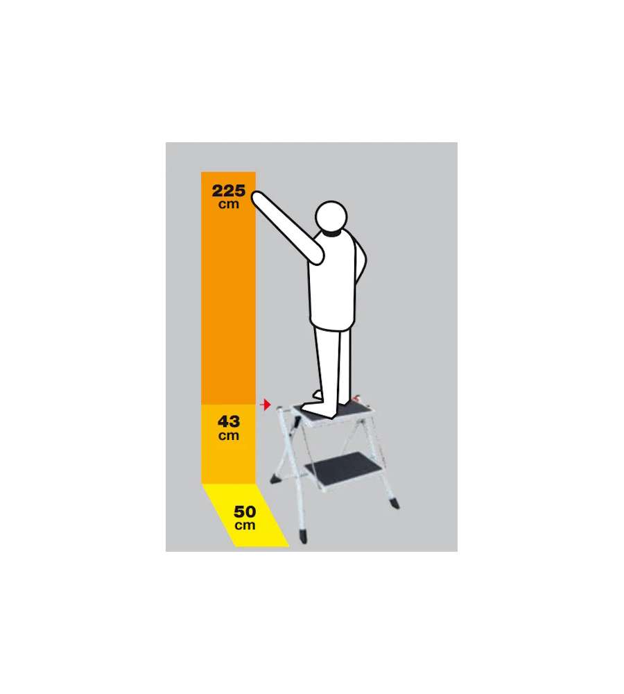 Descrizione: Sgabello pieghevole Nino in acciaio, con gradino antiscivolo e portata fino a 150 kg. Compatto e pratico, misura 43 cm di altezza. Ideale per lavori in casa e in giardino.