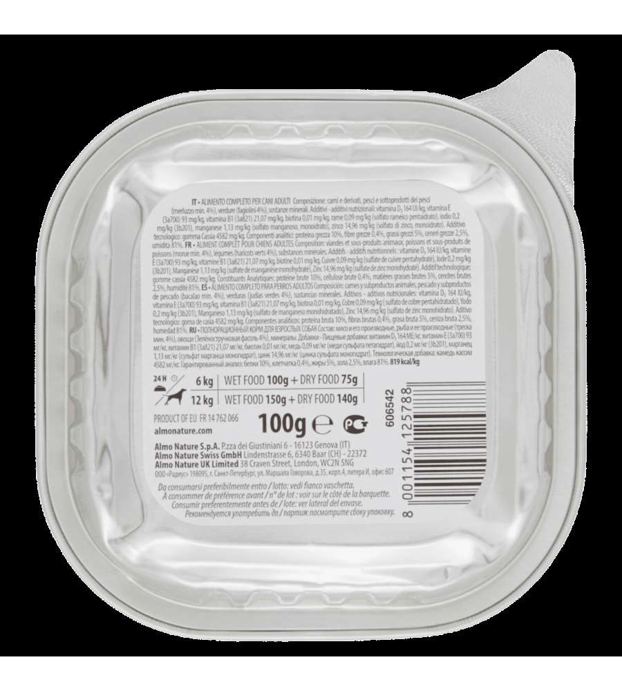 Alimento completo per cani adulti, formato mousse da 100 g. Contiene merluzzo (min. 4%) e fagiolini (4%), senza glutine. Nutrienti essenziali e ricetta bilanciata per una dieta sana e gustosa. Adatto per cani attivi.Ingredienti principali: