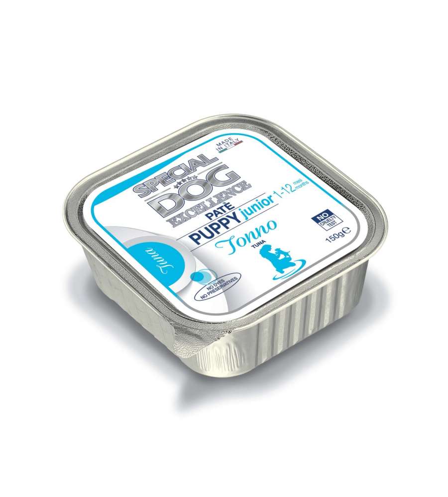Descrizione: Cibo umido Special Dog Excellence per cuccioli, 150g. Ricetta nutriente a base di tonno, senza coloranti né conservanti, ideale per cani junior. Supporta la crescita sana e il benessere.