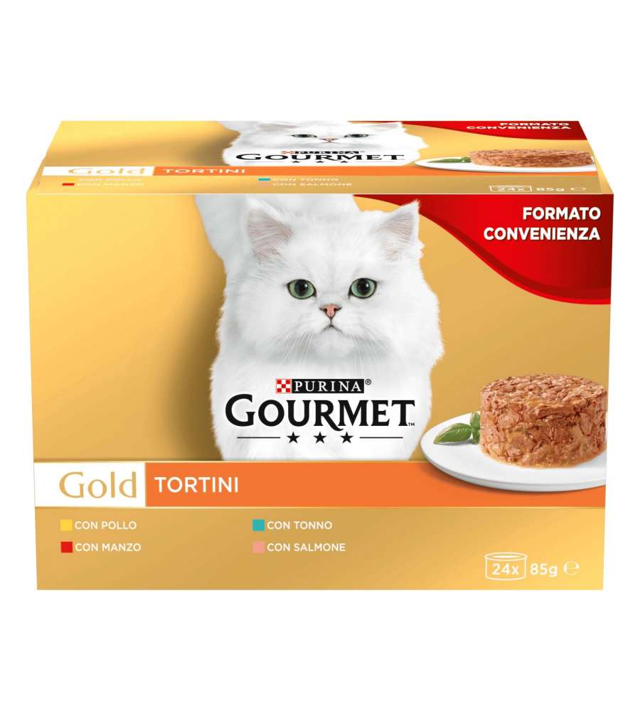 Descrizione: Scopri il Gourmet Gold Multipack Tortini 24x85g, un cibo umido per gatti con ricette irresistibili di pollo, manzo, tonno e salmone. Bocconi finemente sminuzzati in salsa, per pasti raffinati e deliziosi.