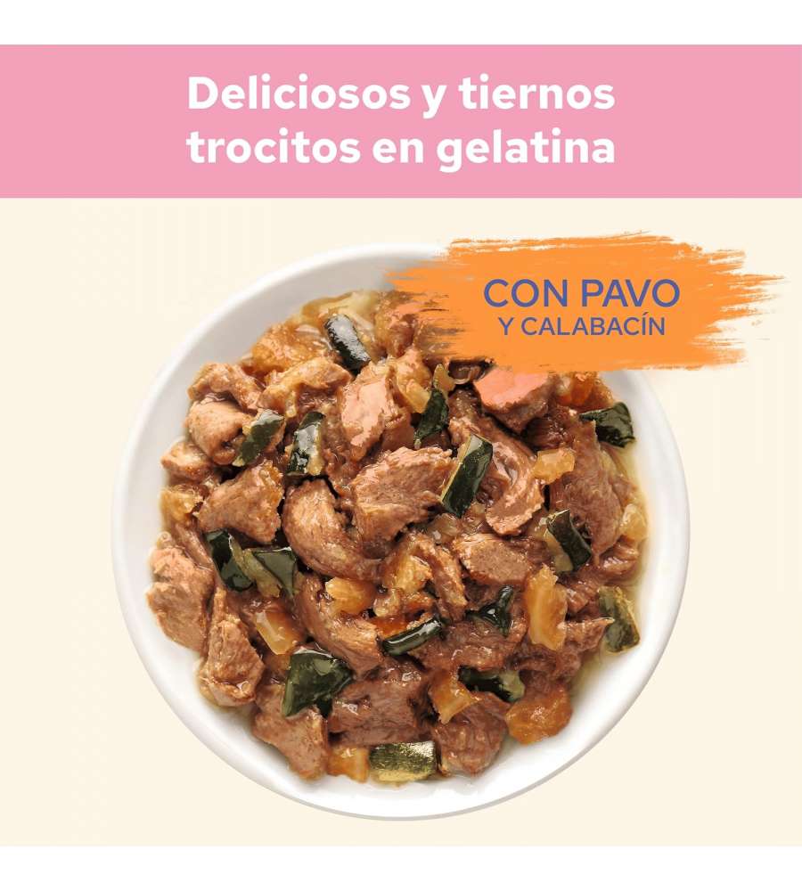 Cibo umido per gattini con tacchino e zucchine, in pezzi teneri in gelatina. Senza aromatizzanti, conservanti o coloranti artificiali. Nutrizione completa e bilanciata, con ingredienti naturali selezionati. Peso: 85 g.Ingredienti principali: