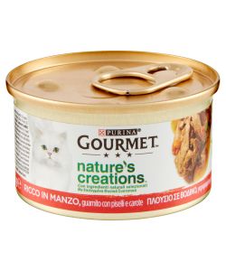 Mousse umida Purina Gourmet Gold con manzo, 85g. Nutrizione completa per gatti adulti, alta digeribilità e texture cremosa. Ingredienti selezionati arricchiti con vitamine e minerali. Ideale per gatti sensibili e schizzinosi.Ingredienti principali: