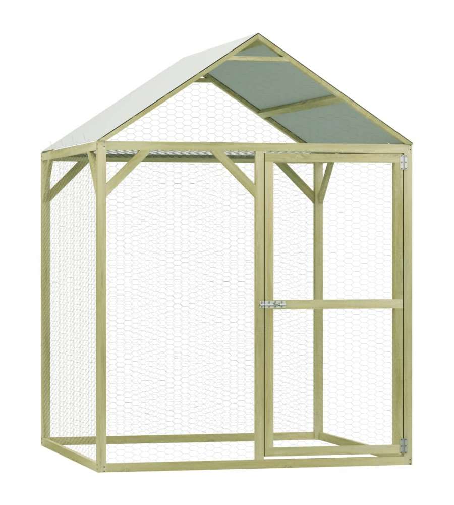 Realizzato in legno di pino impregnato, il pollaio ? estremamente durevole, resistente agli agenti atmosferici e alla putrefazione. Realizzato al 100% in poliestere, il tetto ? resistente all'acqua. Dotato di una serratura, il cancello ? dotato di una porta con serratura facilmente apribile con chiavistelli inclusi. Inoltre, grazie alla griglia in acciaio zincato, potrete tenere sotto controllo i vostri animali. La gabbia deve essere assemblata.