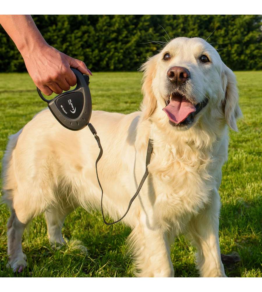 Guinzaglio retrattile in nylon nero, lunghezza 3 m, per cani fino a 50 kg. Pulsante ergonomico per un facile utilizzo, impugnatura confortevole e robustezza garantita. Marca Ferplast, ideale per passeggiate sicure e pratiche.Regolabile: