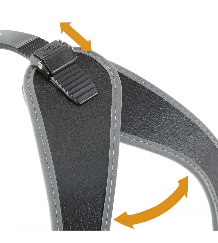 Pettorina ergonomica in nylon, leggera (129 g), con bordo riflettente per maggiore sicurezza. Regolabile per adattarsi a ogni corporatura, facile da indossare grazie alla microregolazione. Misure: girocollo 57 cm, sottopancia 65 cm.Regolabile: