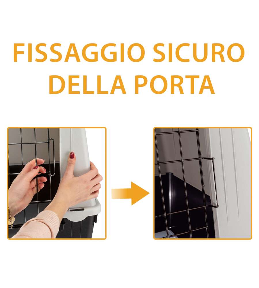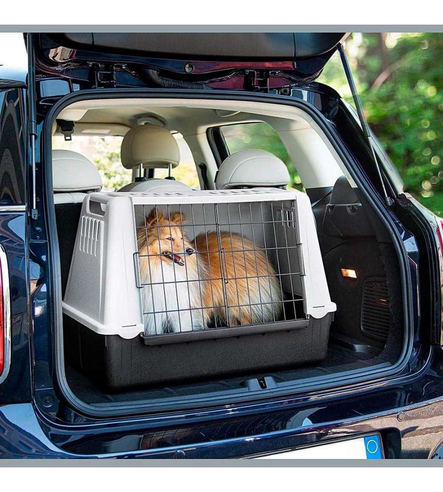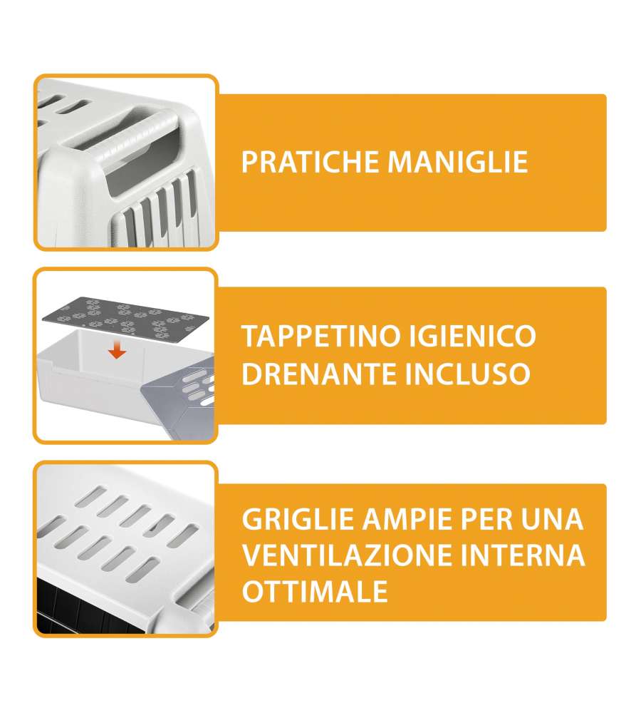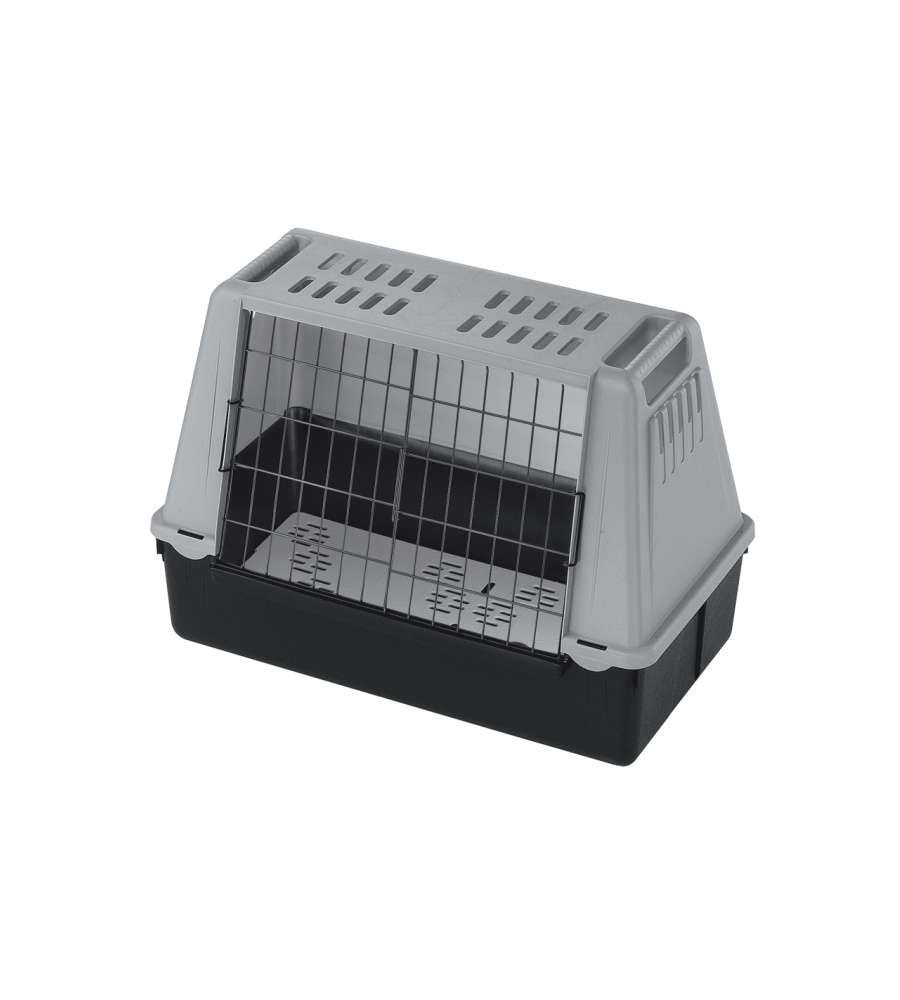 Trasportino per cani Ferplast Atlas Car Mini in plastica lavabile, dimensioni 72x41x51 cm, portata fino a 10 kg. Porta scorrevole bidirezionale, maniglie ergonomiche, ampie griglie di ventilazione e tappeto drenante incluso per comfort e igiene.Composizione: