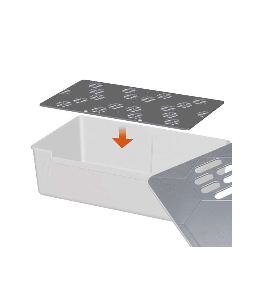 Tappeto drenante incluso, Maniglie, Griglie di ventilazione, Porta scorrevole bidirezionaleCaratteristiche: