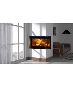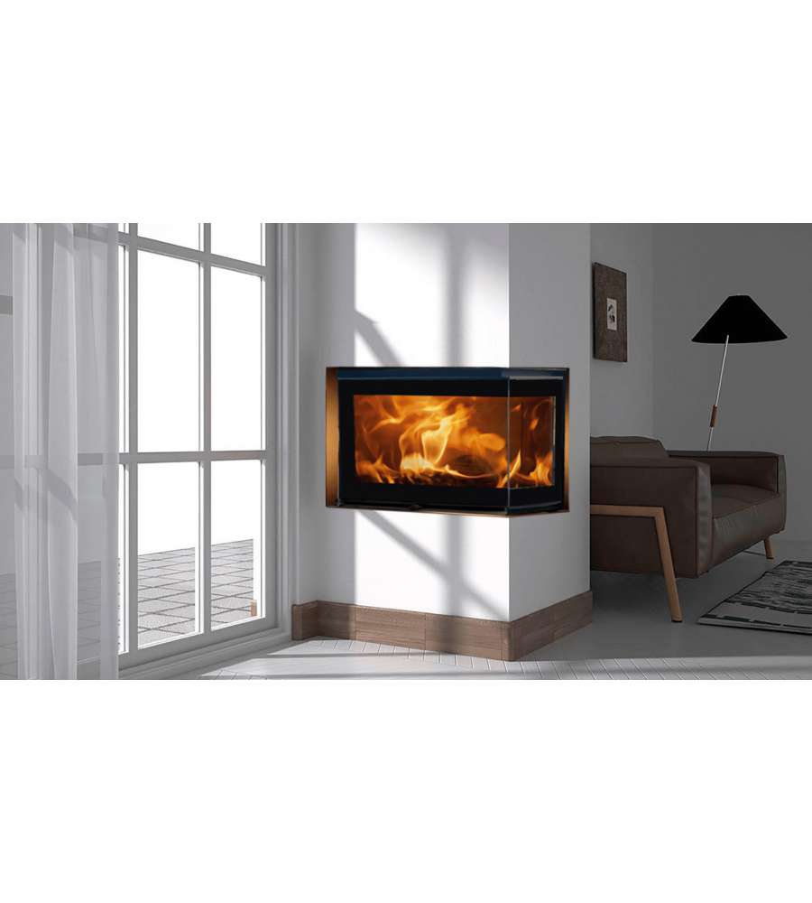 Sistema vetro pulito - Doppia combustione - 180 mc Volume di riscaldamento - Focolare rivestito in vermiculite - Tronchi di 50 cm - Presa d'aria esterna - Porta in vetro serigrafato