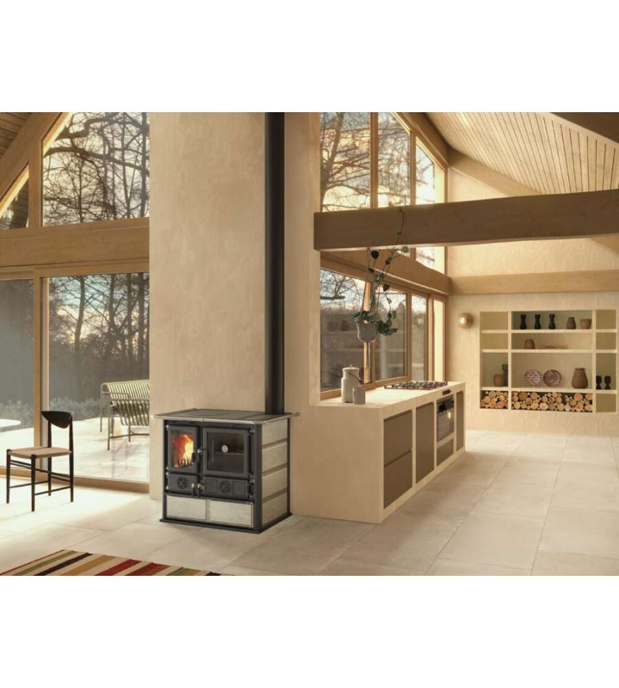Descrizione: Scopri la Cucina a Legna Rosa Vst di La Nordica, design elegante con rivestimento in Pietra Naturale. Focolare e porte in ghisa e vetro ceramico. Sistema di post combustione per basse emissioni, potenza 8,8 kW, riscalda fino a 252 m3.