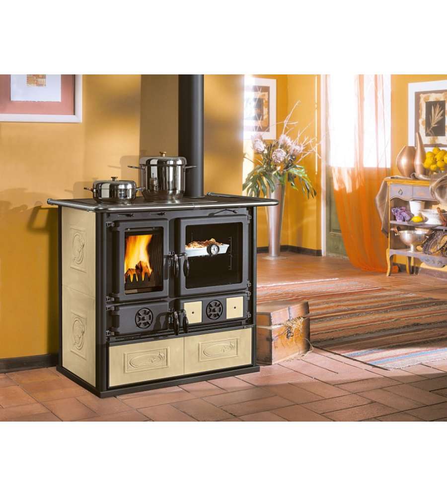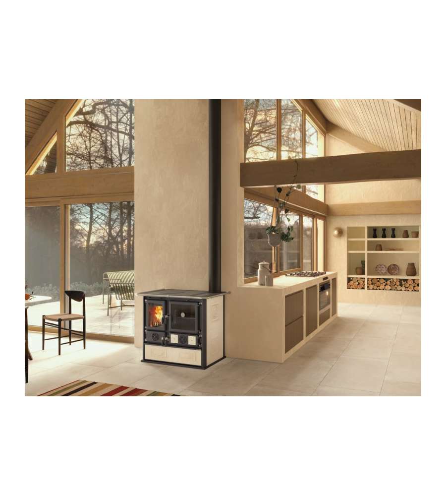 Descrizione: Scopri la Cucina a Legna Rosa Vst 5.0 Liberty di La Nordica, design color panna e focolare in ghisa. Sistema di post-combustione per basse emissioni, rendimento termico 85,4%, ideale per cucinare e riscaldare fino a 252 m3. Dimensioni: 103x65x85 cm.