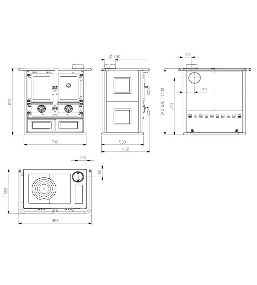Descrizione: Cucina a legna La Nordica Rosetta Liberty 5.0 Vst, colore Panna, con focolare in ghisa e porte smaltate. Elevato rendimento (86,9%) e bassissime emissioni. Perfetta per riscaldare fino a 226 m3. Dimensioni: 88,5x57x84 cm.