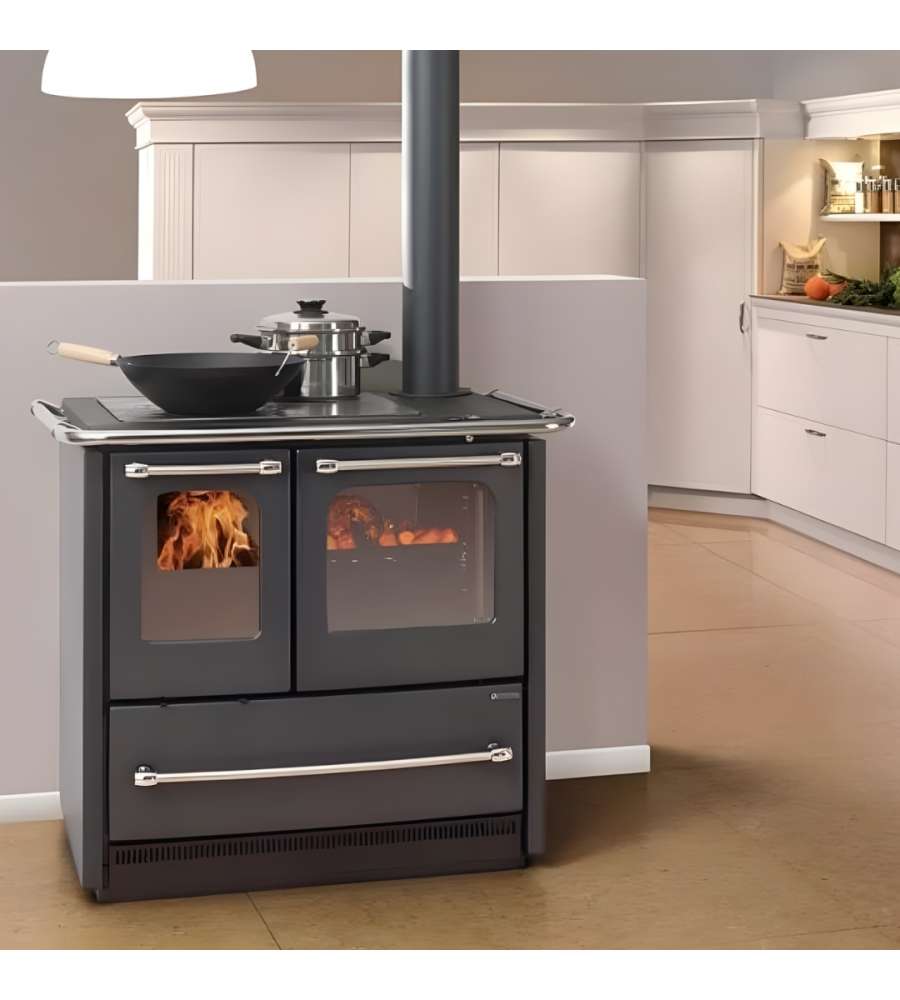 Descrizione: Cucina a legna Sovrana colore Antracite di La Nordica: focolare in ghisa, forno da 41 litri e design robusto in acciaio smaltato. Potenza 7,5 kW, ideale per riscaldare e cucinare con stile. Classe A+.