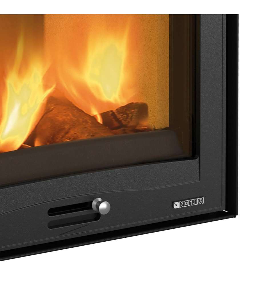 Descrizione: Inserto caminetto a legna 60 4.0 Ventilato La Nordica: potenza di 6,5 kW, ideale per riscaldare 186 mc. Focolare in ghisa, cassetto cenere estraibile, sistema di post-combustione per basse emissioni. Rendimento termico fino a 80,8%.