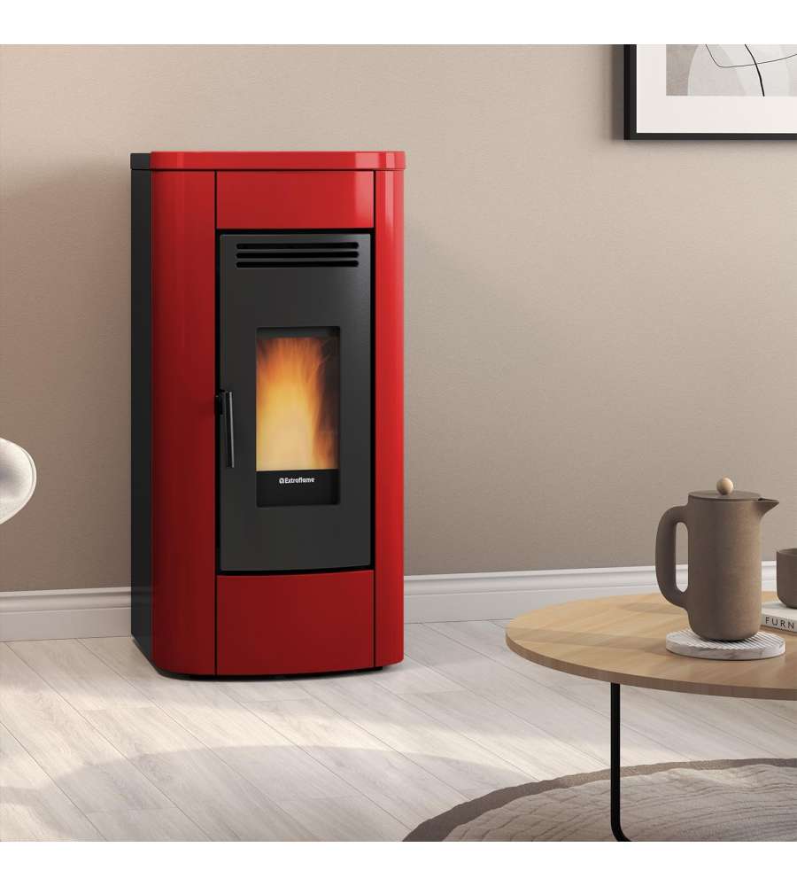 La Stufa a Pellet Canalizzata Klaudia Plus 5 di Extraflame rappresenta una soluzione ideale per chi cerca un riscaldamento ecologico ed efficiente. Grazie alla sua potenza di 8 kW, è in grado di riscaldare ambienti fino a 230 m³, garantendo comfort e benessere in ogni stagione. Il design elegante in bordeaux si integra perfettamente in qualsiasi arredamento, mentre la struttura in acciaio e ghisa assicura durata e resistenza nel tempo. Con un serbatoio ermetico da 15 kg e un consumo variabile tra 0,7 e 1,8 kg/h, questa stufa offre anche un'eccellente efficienza energetica, rendendola una scelta sostenibile per il riscaldamento domestico. Inoltre, la possibilità di canalizzare l'aria fino a 6 metri consente di diffondere il calore in modo uniforme in tutta la casa, migliorando ulteriormente l'esperienza di utilizzo.
