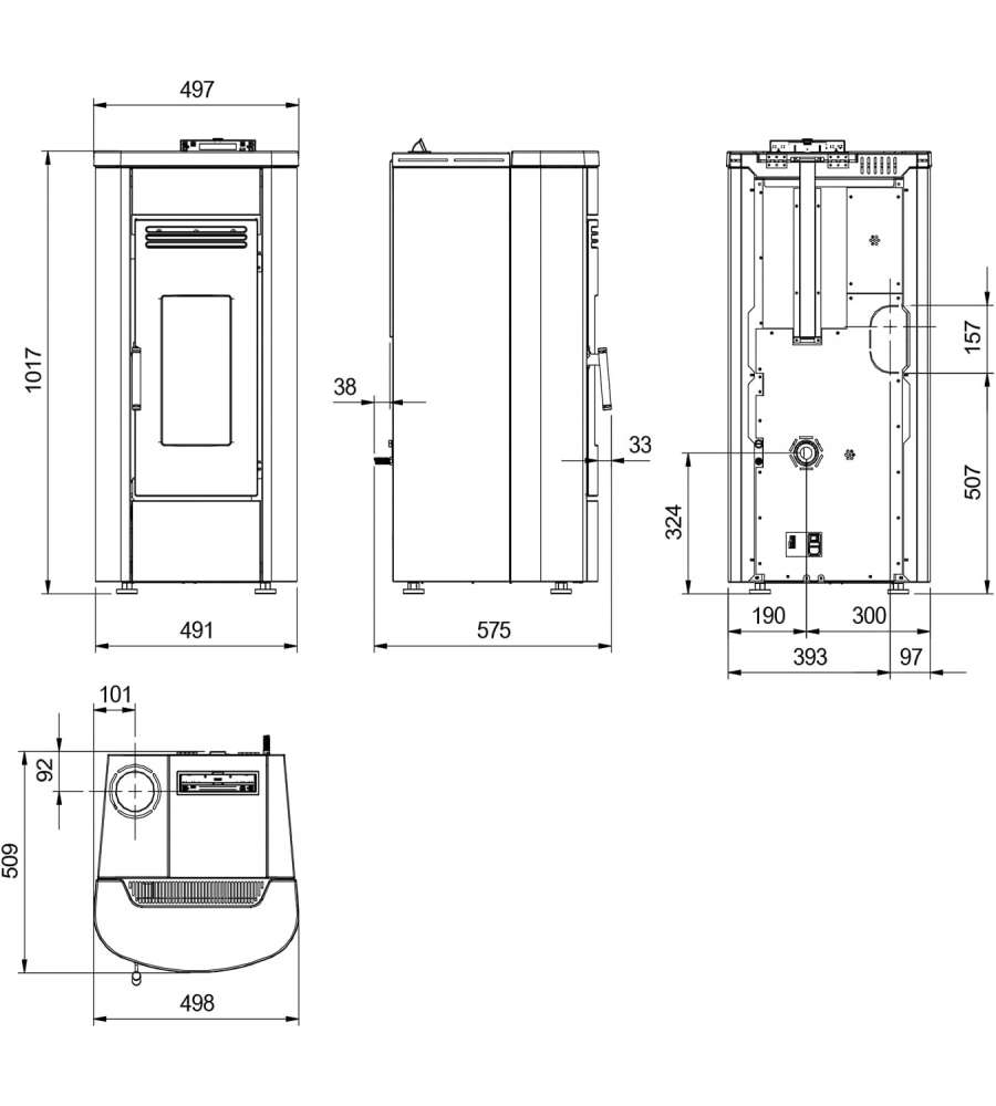 Descrizione: Stufa a pellet canalizzata Extraflame Klaudia Plus 5.0, potenza termica nominale 8 kW, design elegante bordeaux. Riscalda fino a 230 m³ con efficienza del 92,5%. Serbatoio ermetico da 15 kg e ventilazione regolabile. Dimensioni: 498x575x1017 mm..