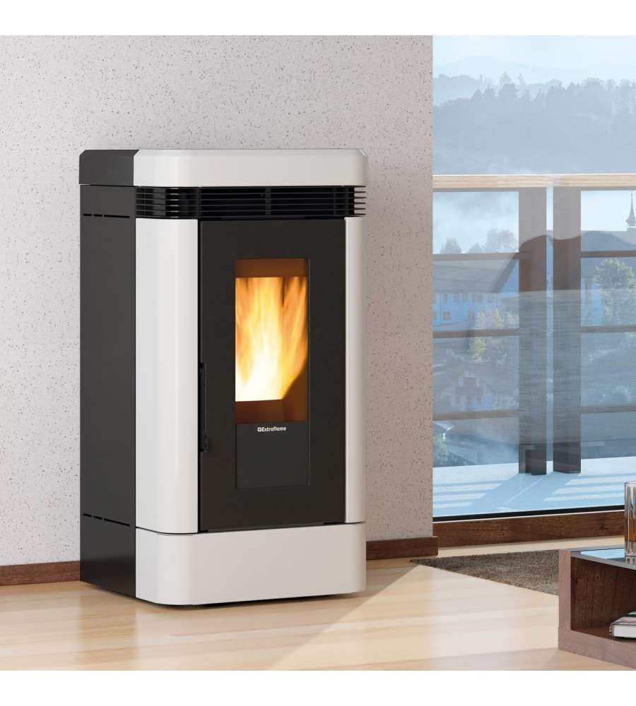 La stufa a pellet Lucia Plus Bianca di Extraflame rappresenta una soluzione ideale per il riscaldamento domestico, combinando potenza e design. Con una potenza variabile da 3,6 kW a 12 kW, questa stufa è in grado di riscaldare spazi fino a 344 m³, garantendo un comfort ottimale anche nei periodi più freddi. La sua canalizzazione fino a 8 metri e la ventilazione frontale consentono una distribuzione uniforme del calore in tutta la casa. Inoltre, il Wi-Fi integrato permette un controllo remoto semplice e intuitivo, offrendo la possibilità di programmare il funzionamento della stufa direttamente dallo smartphone. Il rivestimento in maiolica bianco non solo conferisce un tocco di eleganza all'ambiente, ma assicura anche un'elevata efficienza e rendimento.