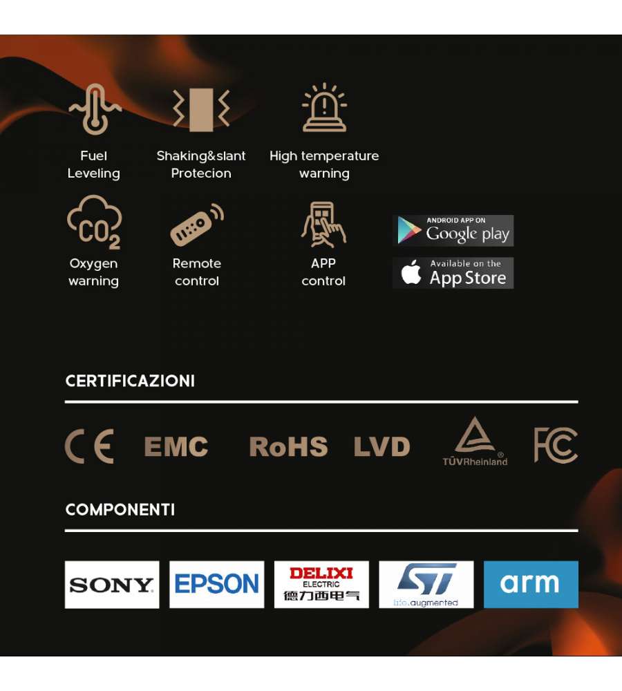 Descrizione: Scopri il bruciatore automatico Slim Divina Fire: elegante, tecnologico e sicuro. Controllo remoto e app per un'atmosfera perfetta. Potenza 5-7 kW, design raffinato, ideale per ogni ambiente.