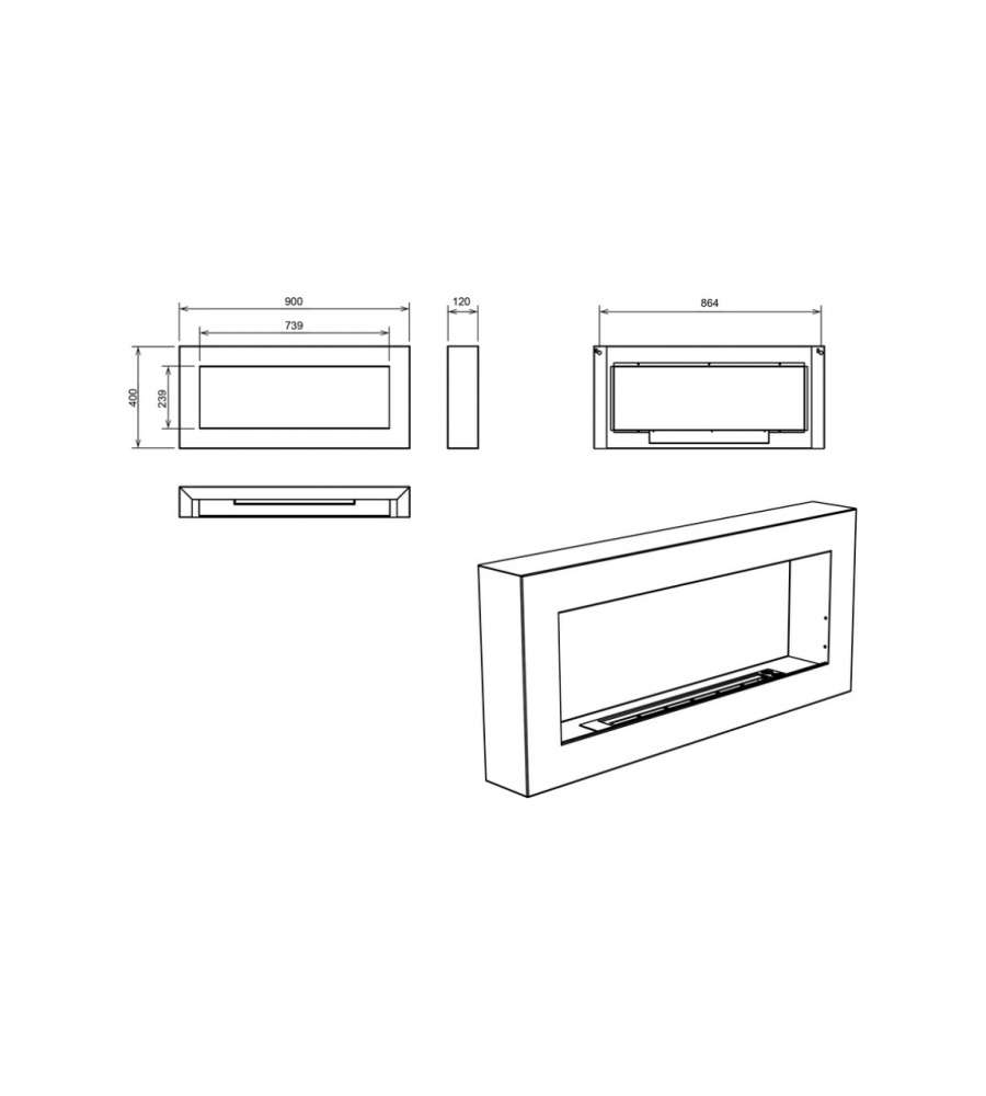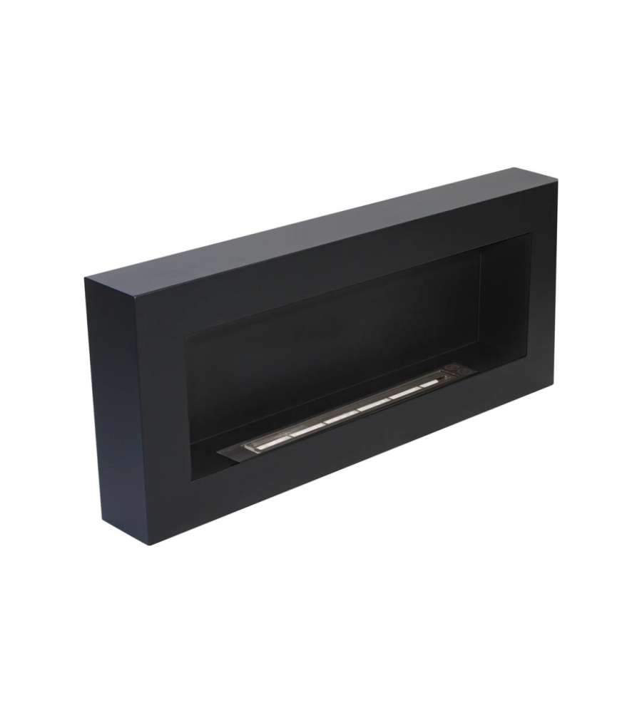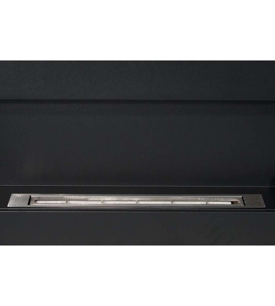 Camino a bioetanolo da parete, ecologico e senza fumi nocivi. Dimensioni 90x12x40 cm, potenza 2,5 kW, ideale per ambienti fino a 25m². Design elegante in acciaio nero, include sassi decorativi e imbuto per bioetanolo.Destinazione d'uso: