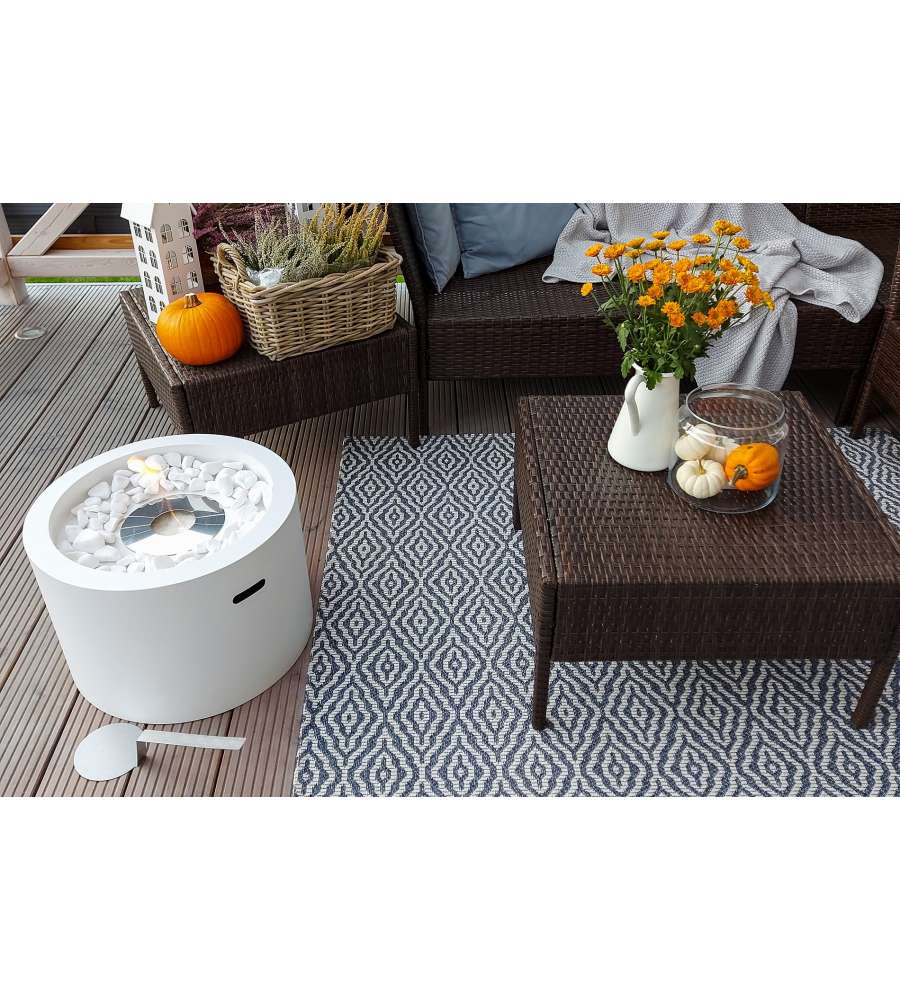 Descrizione: Camino a bioetanolo tondo Rodi Divina Fire, elegante e ecologico. Ideale per interni ed esterni, senza fumi tossici. Design moderno, calore immediato e decorazione con sassolini bianchi inclusi.
