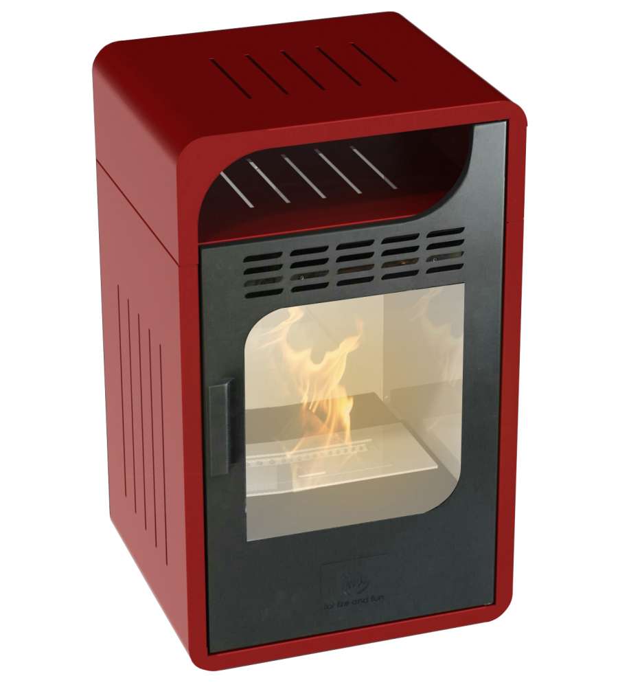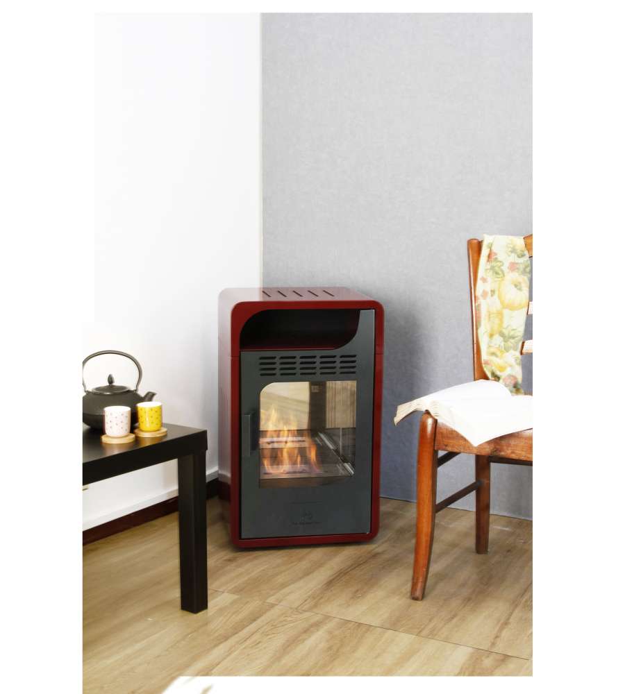 Stufa a bioetanolo ventilata GMR Fiammetta Junior, in acciaio verniciato, potenza di riscaldamento 3 kW/h, ideale per ambienti fino a 28 mq, consumo 0,28 l/h. Bruciatore da 1,5 lt su carrello estraibile, design compatto.Destinazione d'uso: