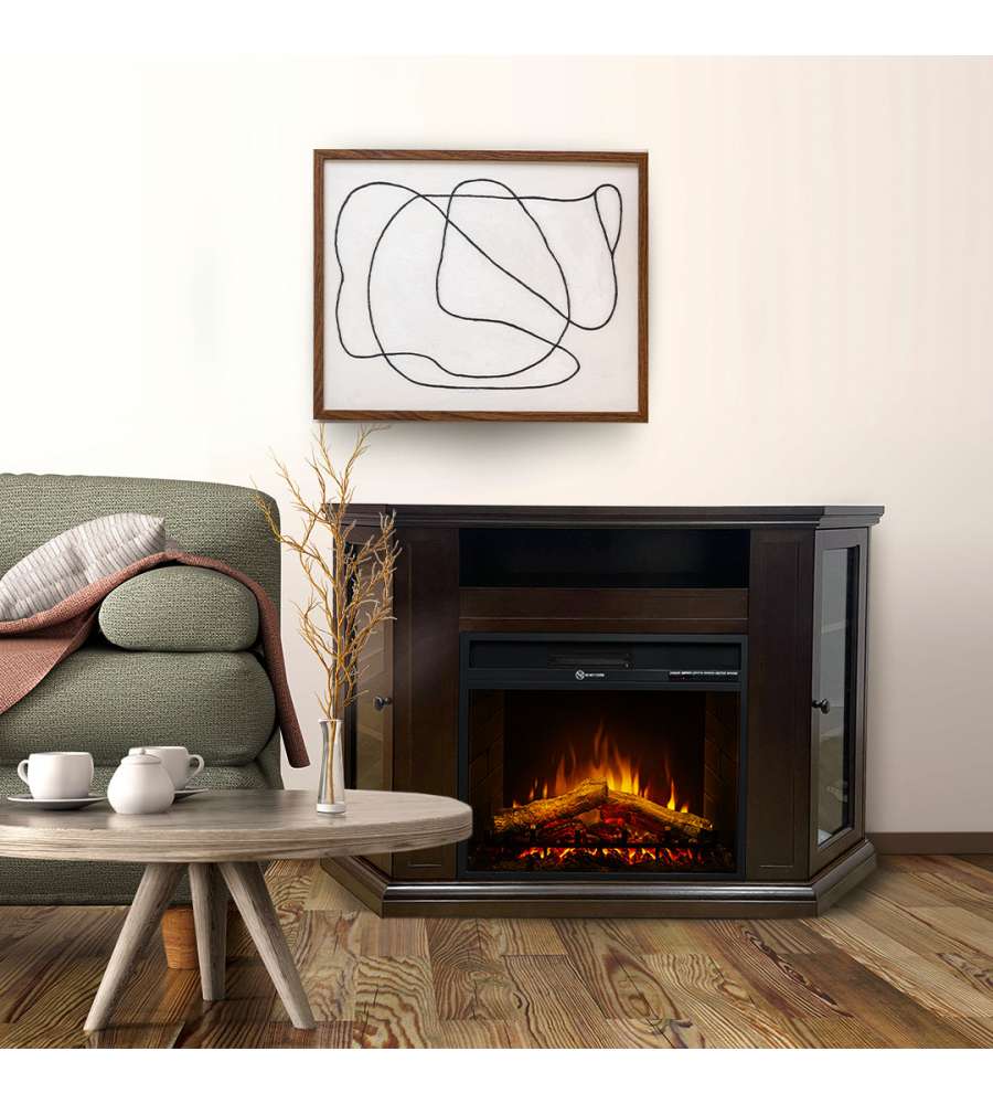 Camino elettrico angolare in legno noce, dimensioni L126 x P78 x H80,5 cm, potenza 1800 W. Design elegante e funzionale, ideale per riscaldare ambienti con stile. Perfetto per chi cerca comfort e bellezza in un unico prodotto.Destinazione d'uso: