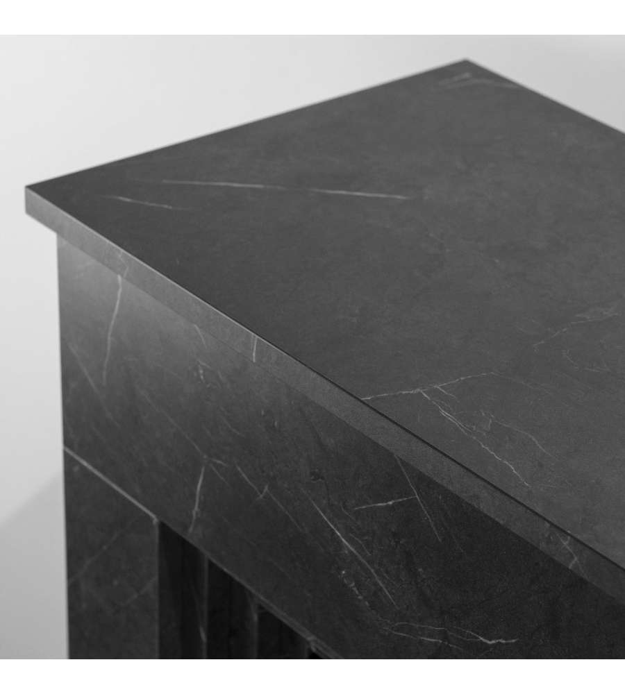 Camino elettrico Bellini in legno effetto marmo di colore nero, design moderno Made in Italy. Potenza 900/1800 W, telecomando incluso. Riscalda fino a 30 m², con timer e termostato digitale. Dimensioni: 96x35x96 cm, montaggio semplice.Destinazione d'uso:
