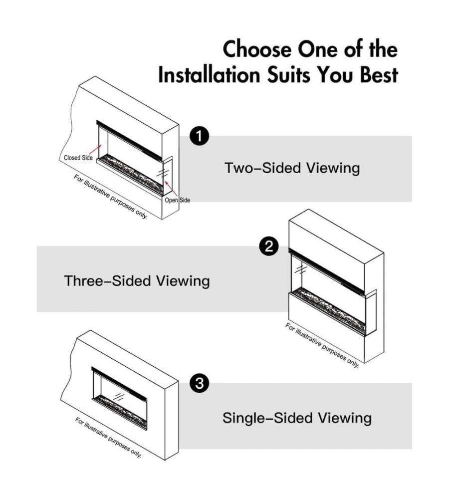 Camino elettrico a incasso Boston con vista panoramica a 3 lati. Potenza regolabile 750/1500 W, assorbimento 50 W in modalità fiamma. Installazione 4 in 1, 9 colori fiamma, telecomando LCD, ventola e timer programmabile. Dimensioni: 127x20,1x43,9 cm.Destinazione d'uso: