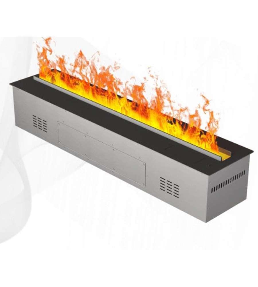 Caminetto elettrico a vapore acqueo Divina Fire VAPOR3D100, moderno e sicuro. Realizzato in acciaio inox, controllabile tramite APP e telecomando. Design elegante, effetto fiamma realistico, consumo energetico ridotto. Dimensioni: 100x22.7x17.8 cm.Telecomando: