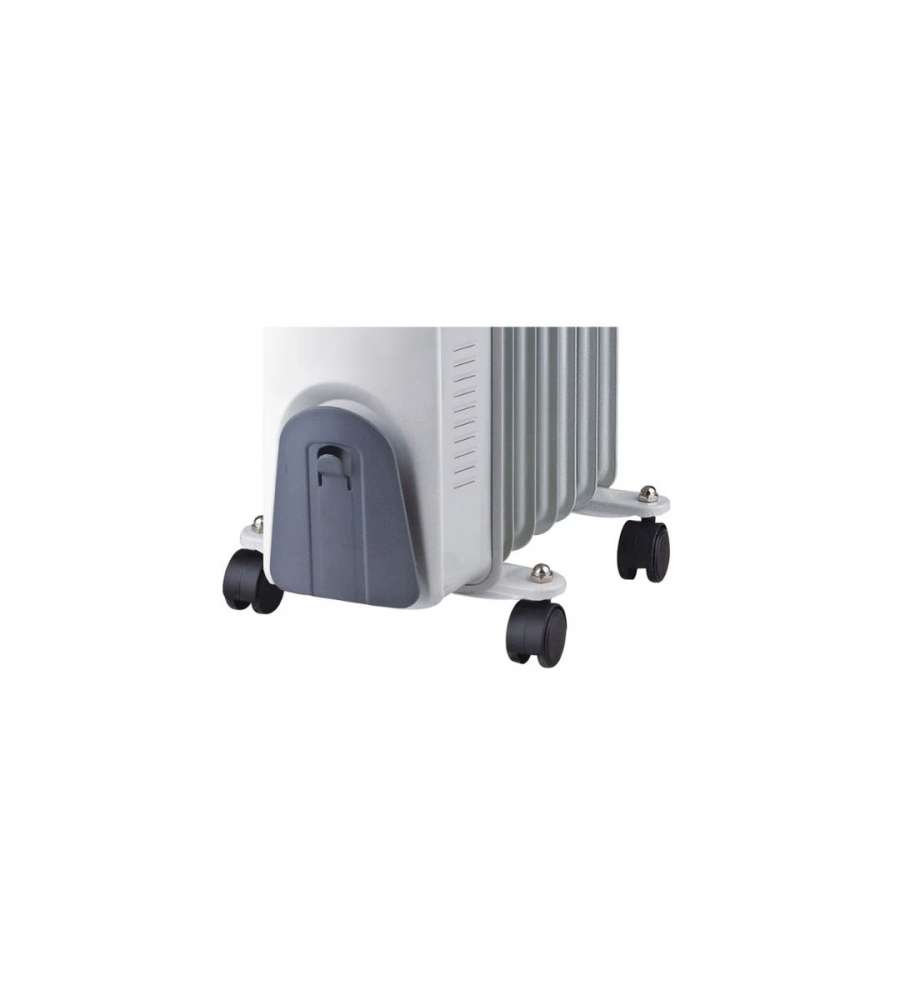 Descrizione: Radiatore ad olio Niklas 1500W con 7 elementi, corpo in metallo verniciato e ruote per il trasporto. Selettore a 3 potenze e termostato per un riscaldamento personalizzato e veloce.