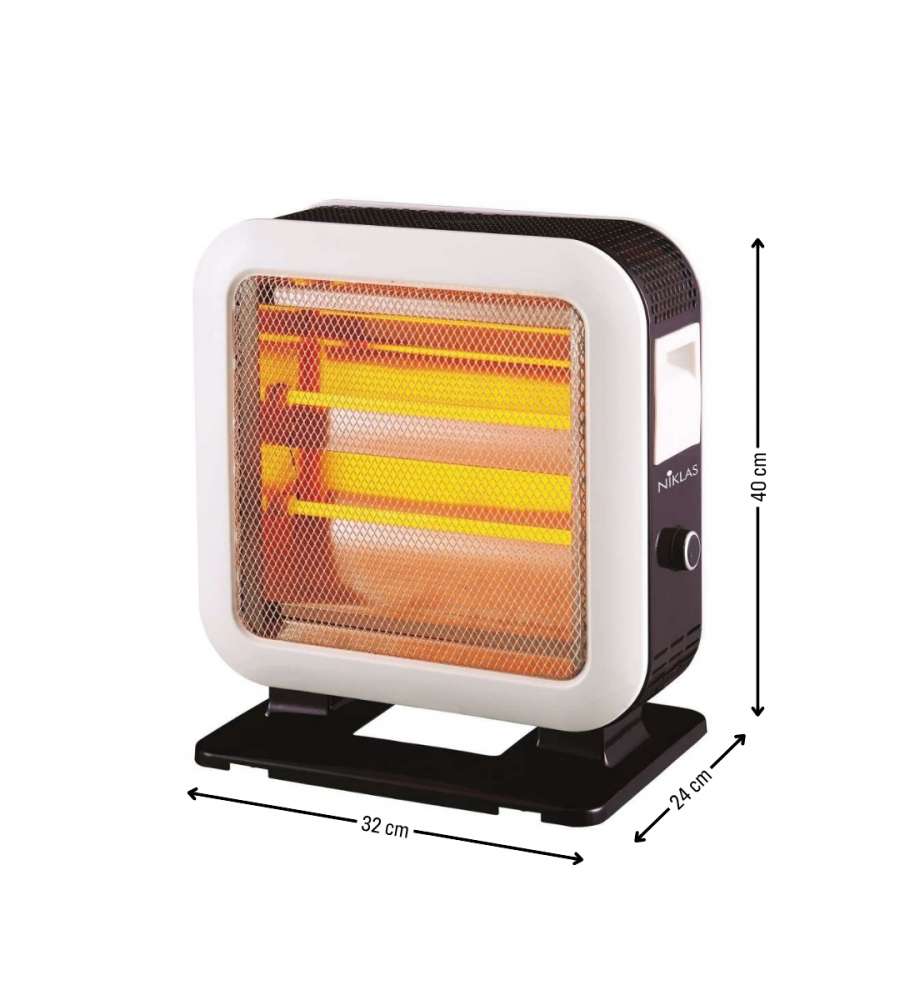 Descrizione: Stufa al quarzo Niklas Double Face 1600W, elementi riscaldanti su entrambi i lati, con corpo in ABS e acciaio. Riscaldamento rapido, 4 potenze selezionabili e sistema antirovesciamento. L'ideale per un caldo confortevole in sicurezza!