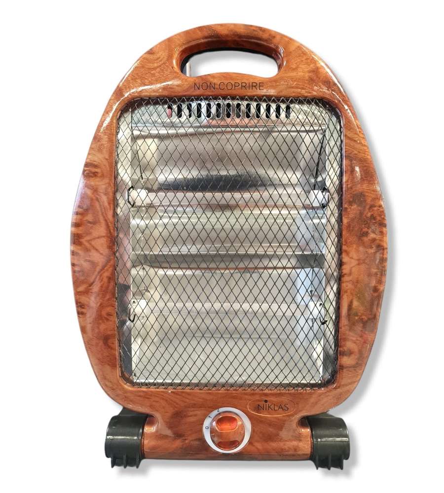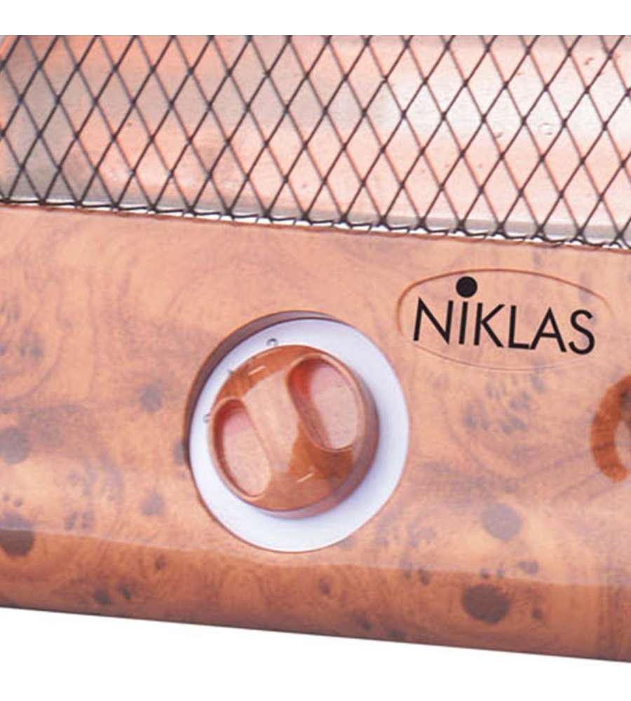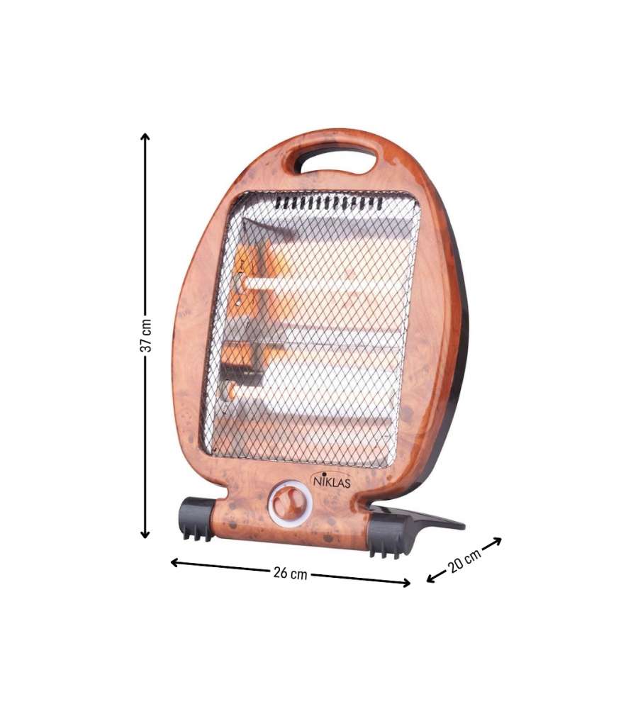 Stufa al quarzo Niklas con potenza regolabile 400/800W. Corpo in ABS resistente, sistema anti-rovesciamento per sicurezza. Dimensioni compatte: 26x20x37 cm. Ideale per riscaldare ambienti domestici in modo efficace.Destinazione d'uso:
