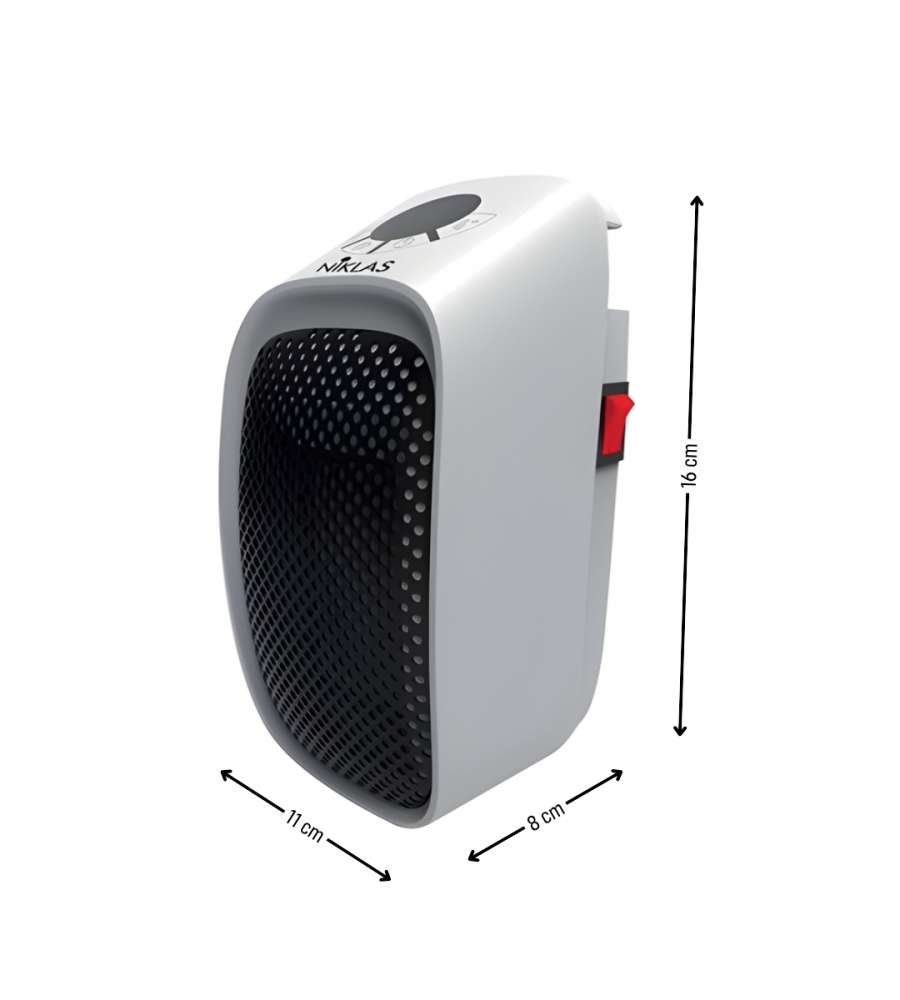Descrizione: Termoventilatore Niklas Ptc Plug-In da 400W, ideale per riscaldare rapidamente gli ambienti fino a 32°C. Con termostato regolabile, display digitale e timer programmabile, offre comfort e sicurezza con autospegnimento.