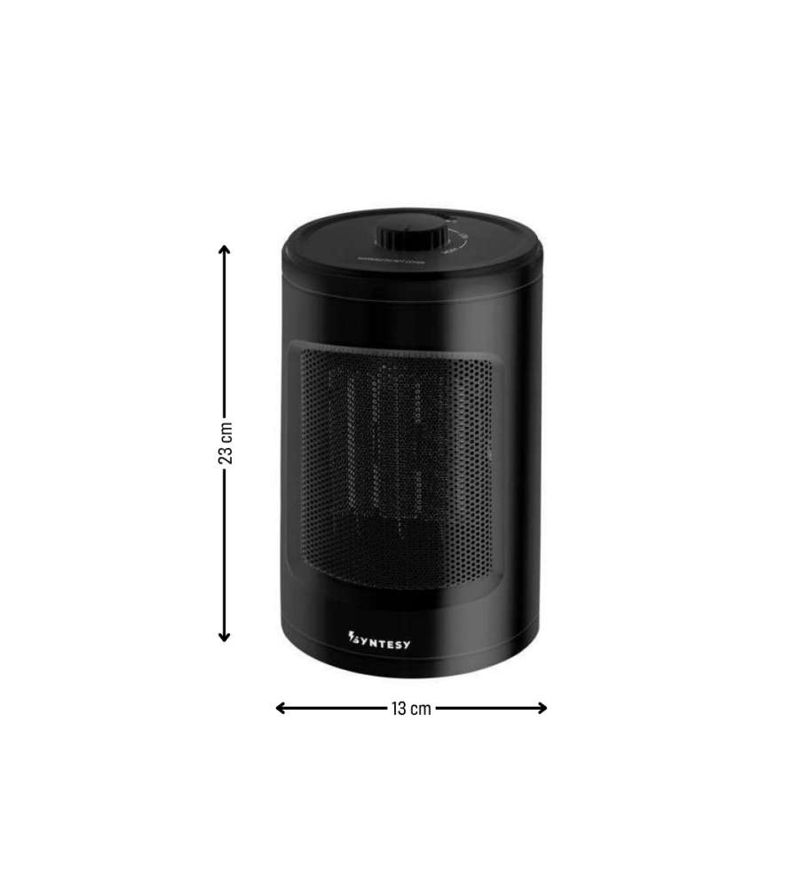 Descrizione: Termoventilatore Ceramico Syntesy Satellite, due livelli di potenza 600W e 1200W, compatto e sicuro. Termostato regolabile, protezione termica e anti-ribaltamento. Ideale per uso domestico non continuativo. Colore nero elegante.