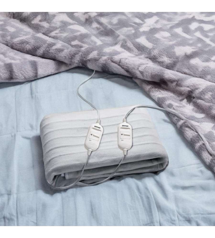 Termocoperta elettrica 2 piazze Zephir, potenza 2x60W. 2 livelli di potenza, comandi staccabili con LED, protezione anti surriscaldamento. Lavabile, dimensioni 160x140 cm. Comfort e sicurezza per notti calde.Destinazione d'uso: