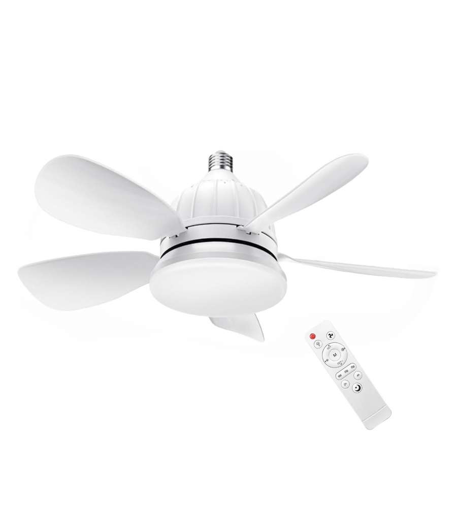Descrizione: Ventilatore da soffitto White con luce LED E27, 12W. Telecomando incluso, 3 temperature di colore (3000K-6500K) e 3 velocità. Design elegante, ideale per ogni ambiente interno. Dimensioni compatte: 45,8x45,8 cm.
