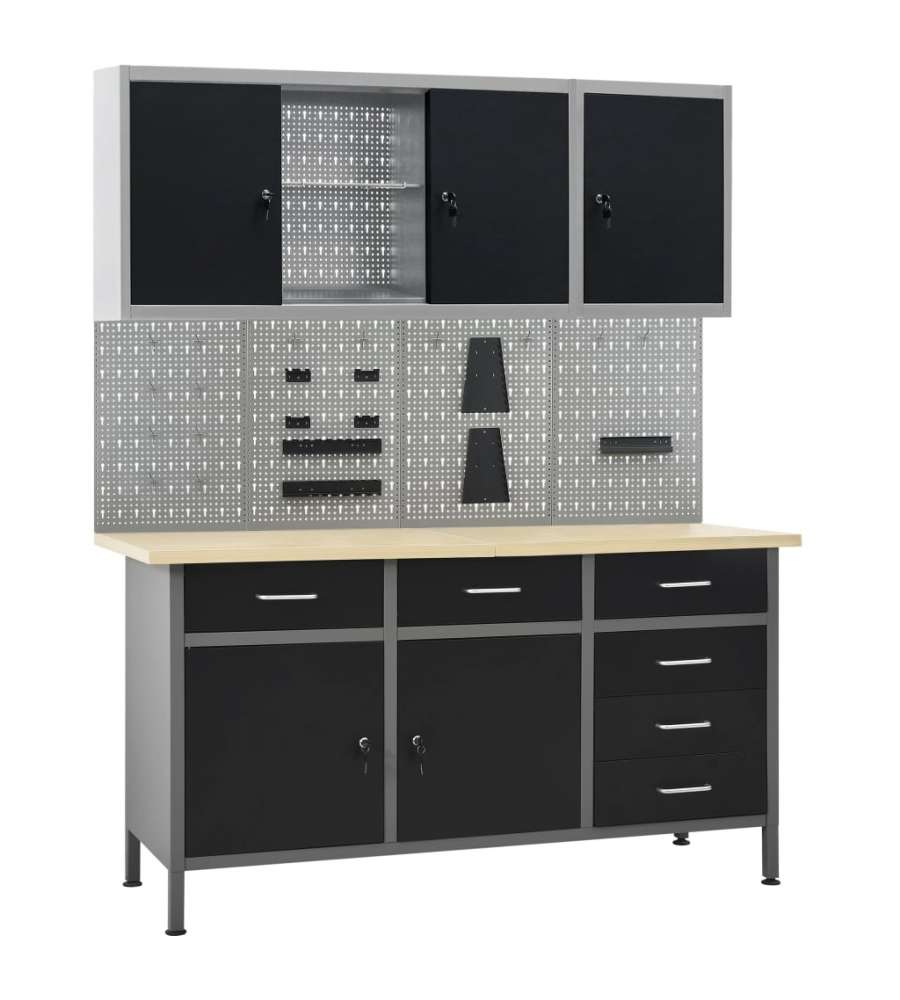 Banco da Lavoro con 4 Pannelli a Parete e 2 Armadietti