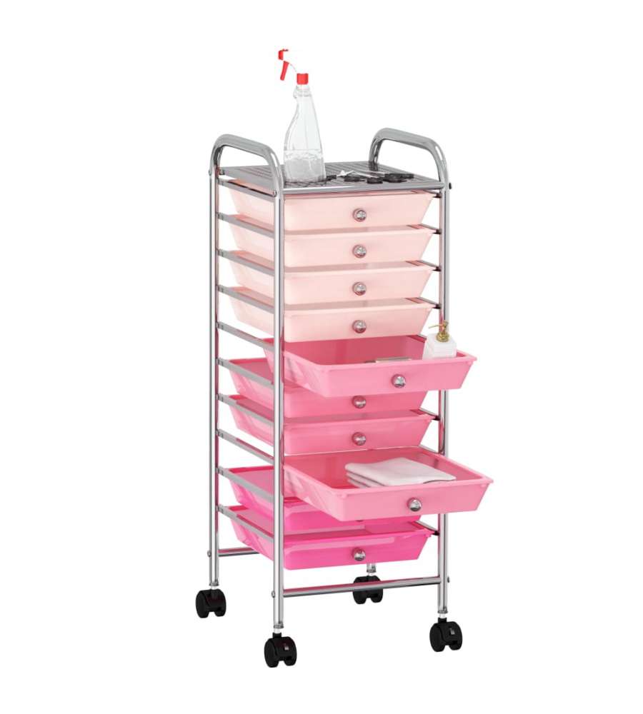 Colore: Rosa sfumato Materiale: Plastica, cromo Dimensioni complessive: 32 x 36,5 x 90 cm (L x P x A) Dimensioni del cassetto: 28,6 x 36 x 6 cm (L x P x A)Altro 6: