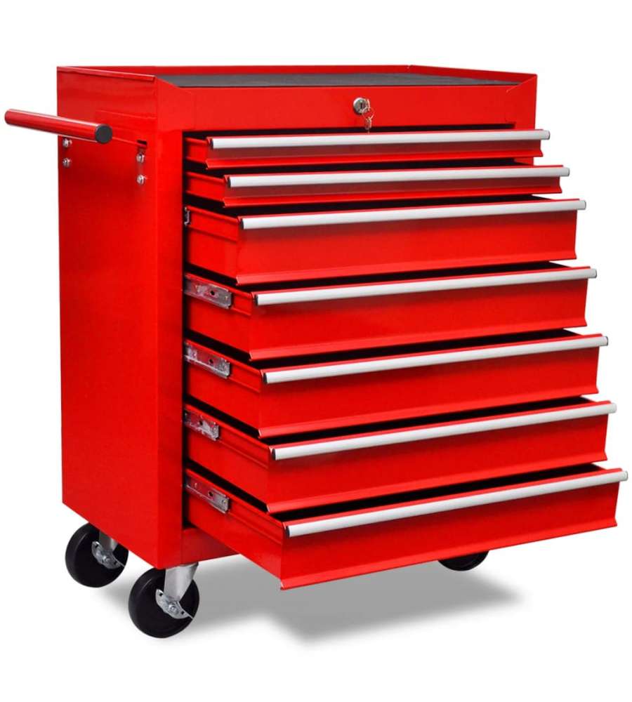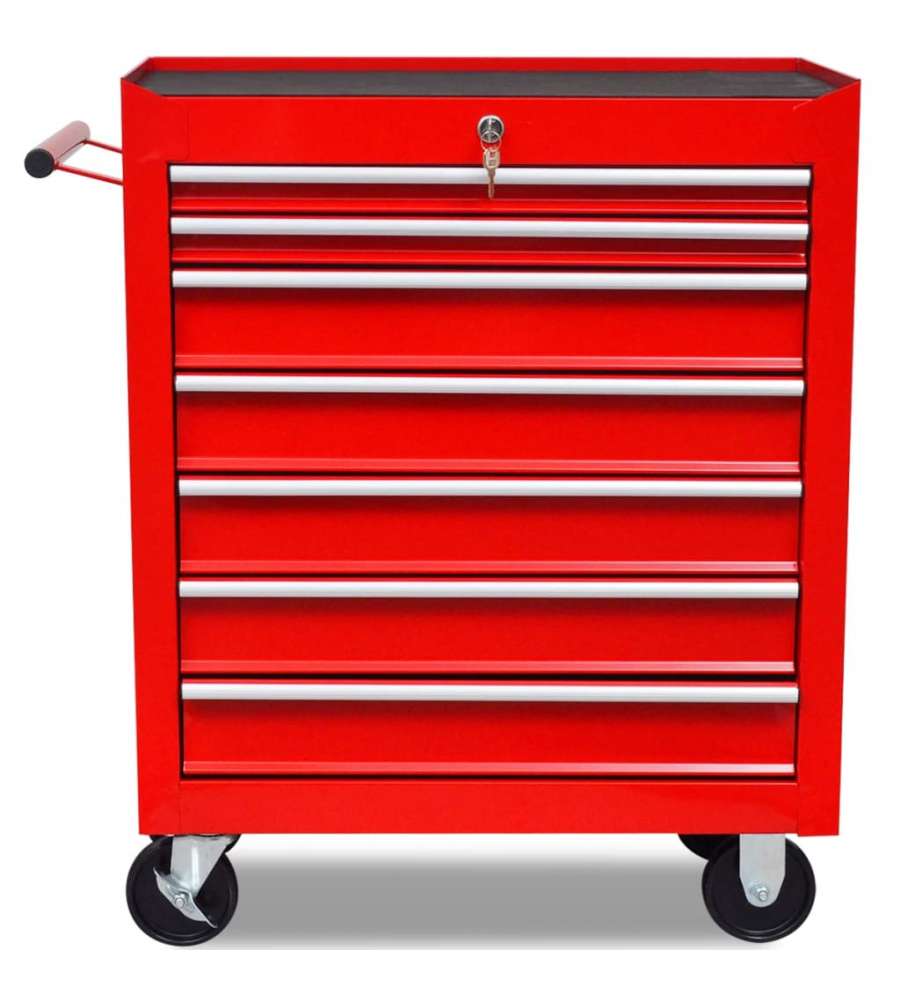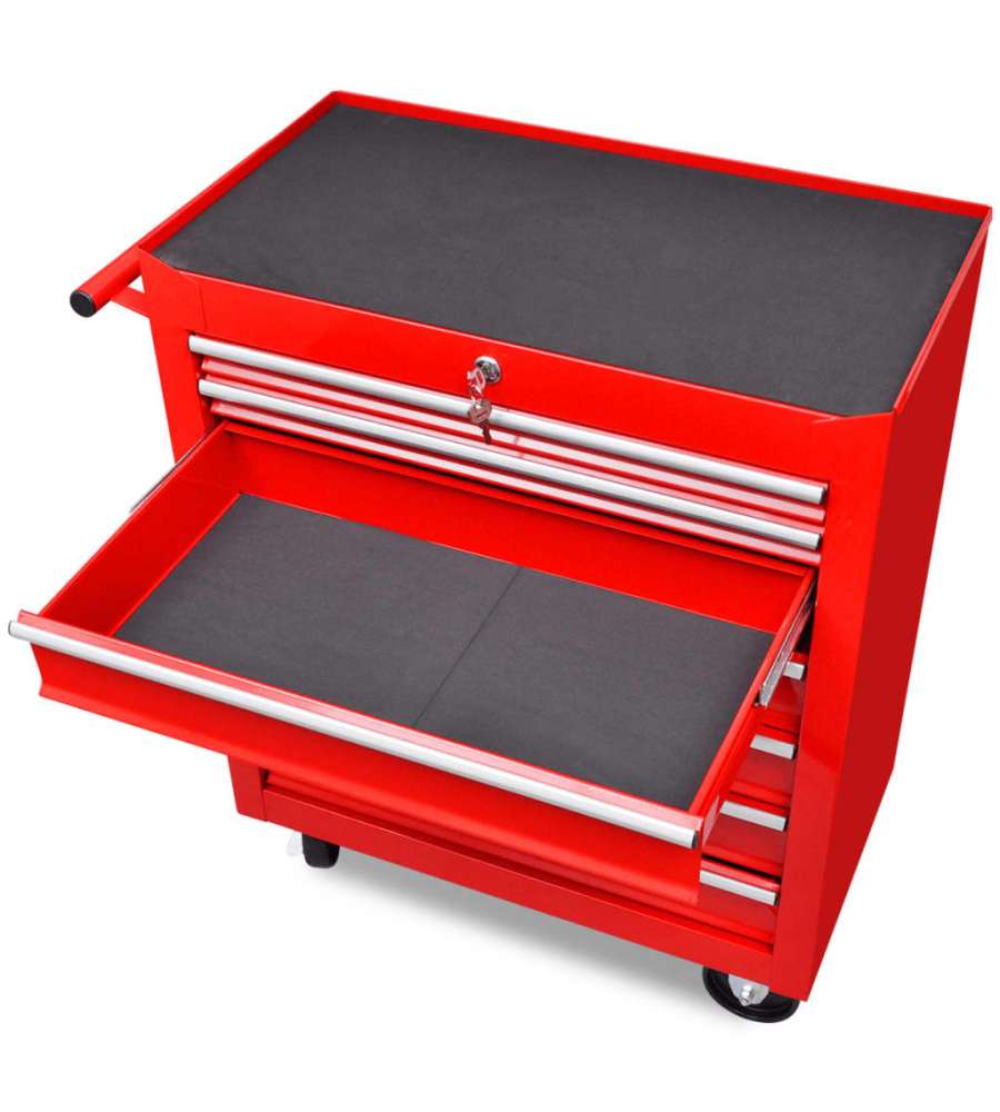 Usa questo carrello comodo con 7 cassetti scorrevoli per depositare e mantenere in ordine i vostri strumenti. Ciascuno dei cassetti ha un rivestimento antiscivolo sul fondo, quindi gli strumenti non scivolano.