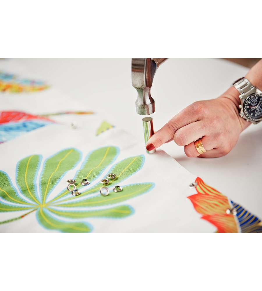 Occhielli in alluminio da 8 mm, ideali per rinforzare fori su tessuti, pelli e accessori. Set di 25 pezzi con ribattitore incluso, per installazioni rapide e precise. Perfetti per scarpe, borse e indumenti. Resistenza garantita.Garanzia:
