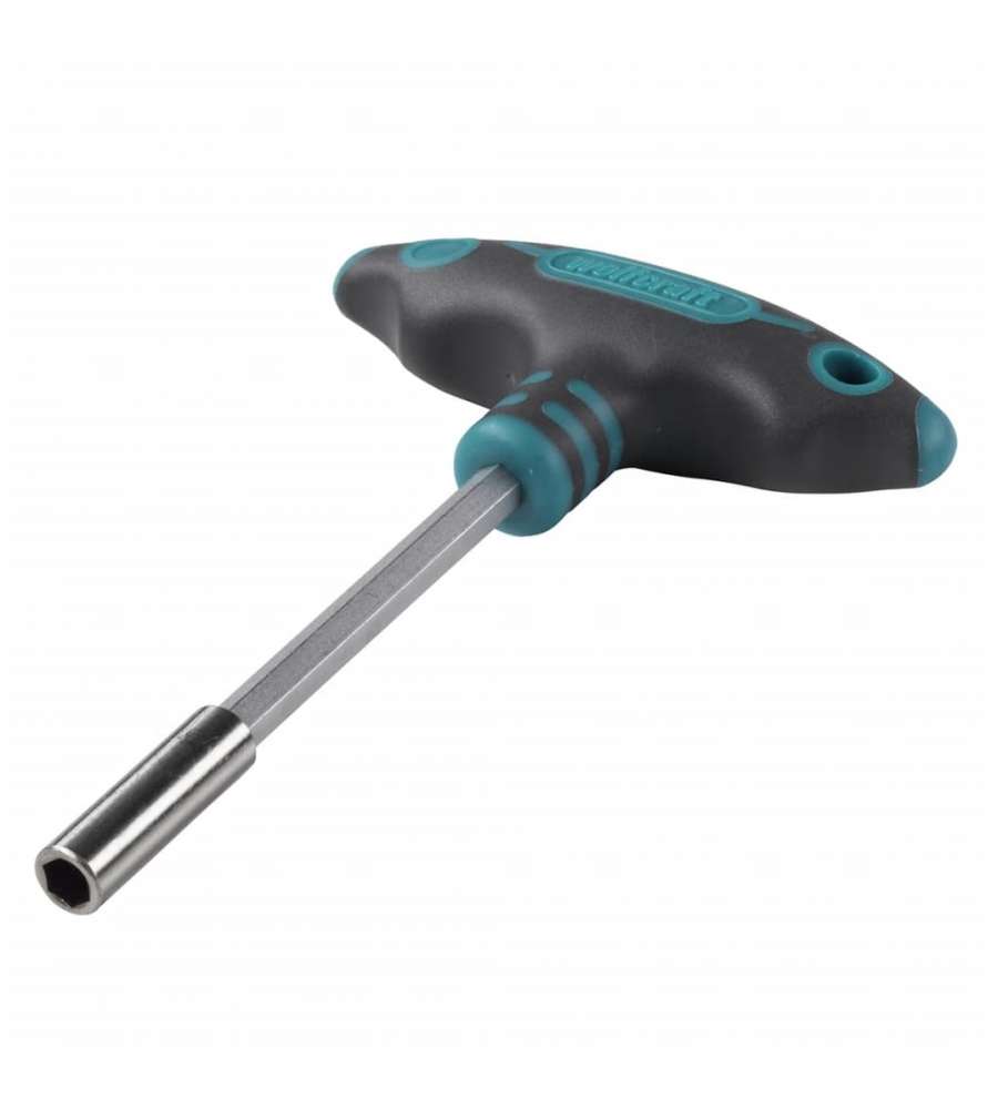 Questo cacciavite con manico con impugnatura a T della wolfcraft , con contenitore per punte, sar? una scelta eccellente per svitare viti o lavorare sopra la testa.