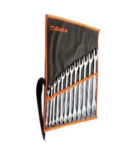 Modello a forchetta doppia Esecuzione cromata opaca Composizione: 6x7-8x9-10x11-12x13-14x15-16x17 18x19-20x22-21x23-24x26-25x28-30x32 Busta tela - UNI 6736 - DIN 3110 - ISO 10102