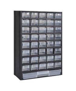 Questa cassetta porta attrezzi con 41 cassetti ( 40 piccoli, 1 grande) vi offre un modo ottimo per organizzare il vostro posto di lavoro. ? perfetto per conservare tutti i tipi di piccoli oggetti come componenti, accessori, persino i vostri lavori fai-da-te. Potrete scegliere di utilizzare il cassetto grande o uno piccolo a seconda delle dimensioni degli oggetti da conservare. La plastica trasparente durevole vi offre la possibilit? di vedere gli articoli che sono conservati nel cassetto.