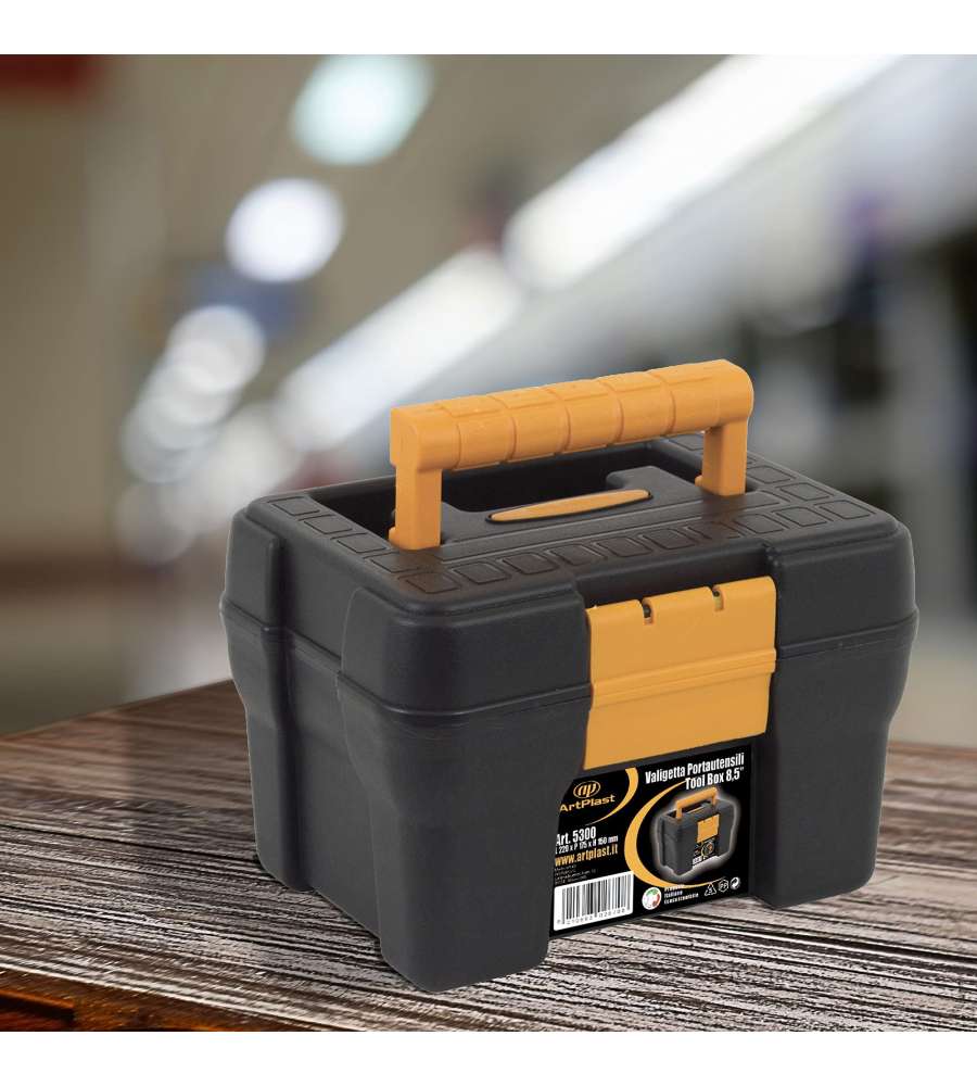 Descrizione: Valigetta portautensili Art Plast 22x17.5x15 cm, compatta e resistente, con maniglia a scomparsa e vaschetta estraibile. Perfetta per organizzare attrezzi di piccole dimensioni in modo pratico e sicuro.