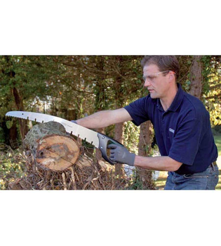 Questa sega da potatura ha denti induriti e temperati in 2 formati con una disposizione speciale, i denti piccoli sono ideali per iniziare facilmente il taglio e quelli pi? grandi per tagliare rapidamente il legno bagnato. ? comoda e sicura da usare grazie al morbido manico ed alla protezione inclusa per la lama.