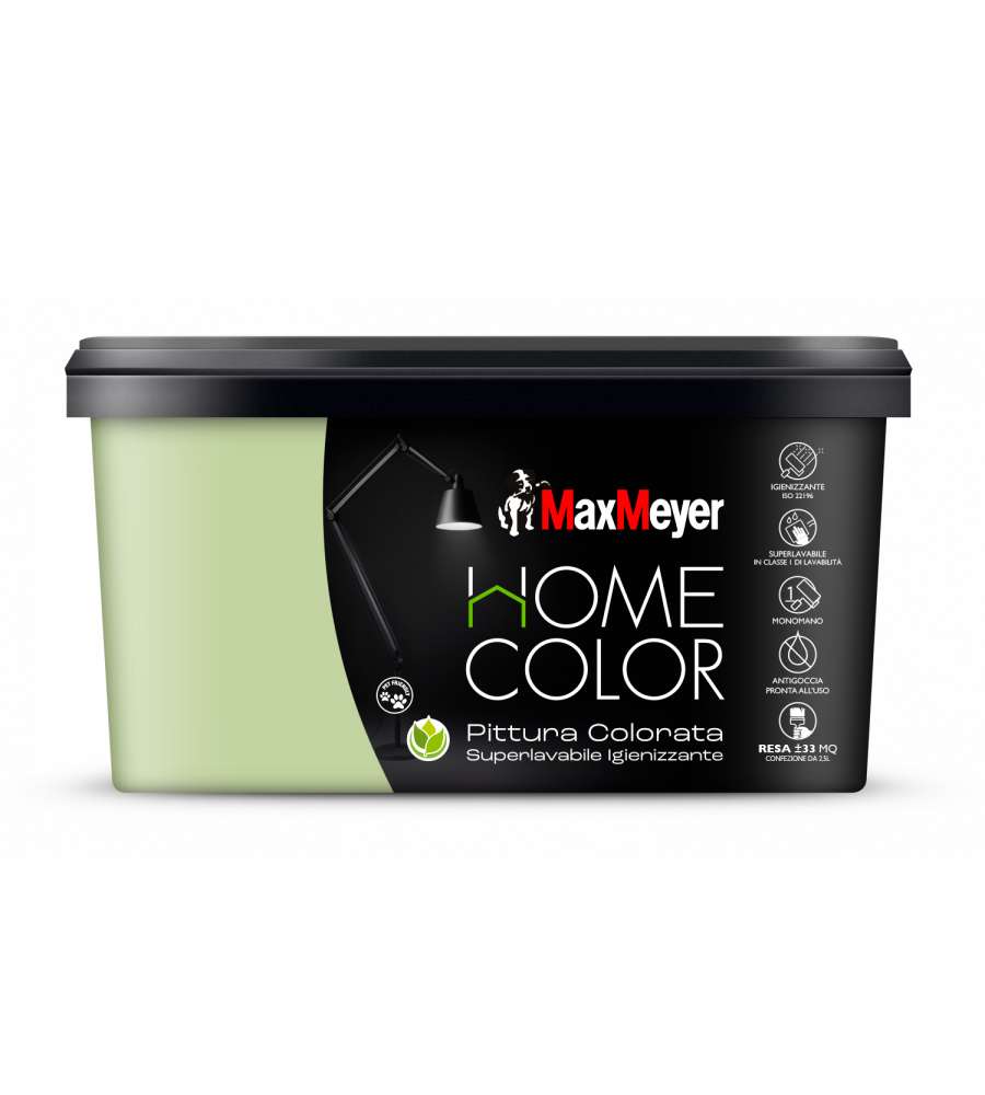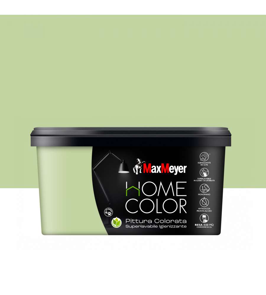 Descrizione: Pittura superlavabile MaxMeyer Home Color in Avocado, 2,5L. Resistente, inodore e salubre, con finitura opaca. Ottima copertura e applicazione facile. Ideale per interni, crea ambienti eleganti.