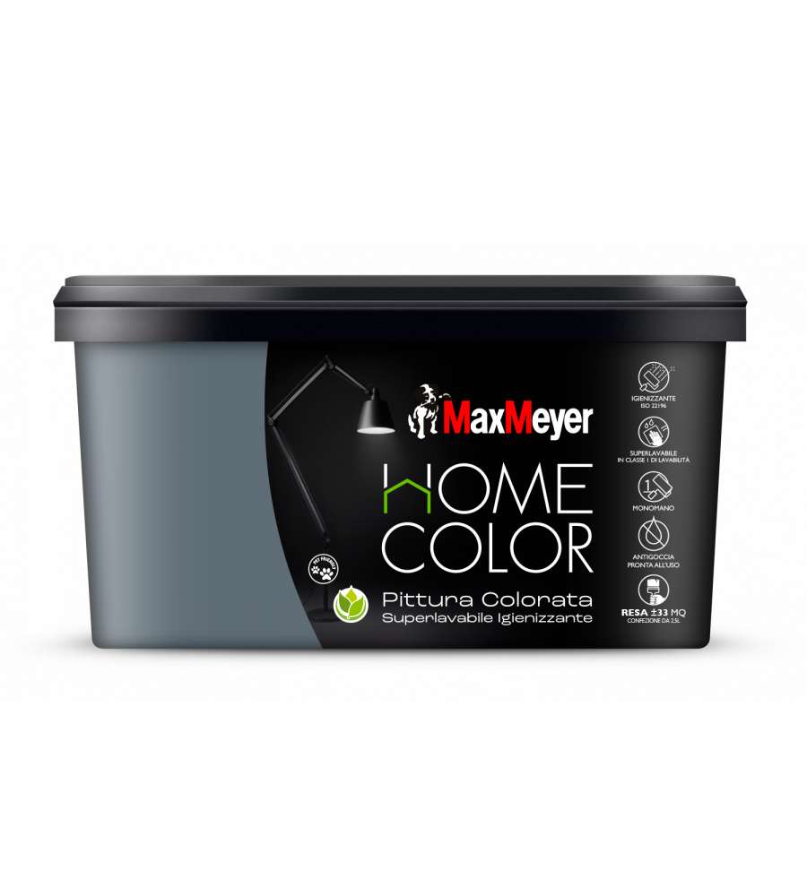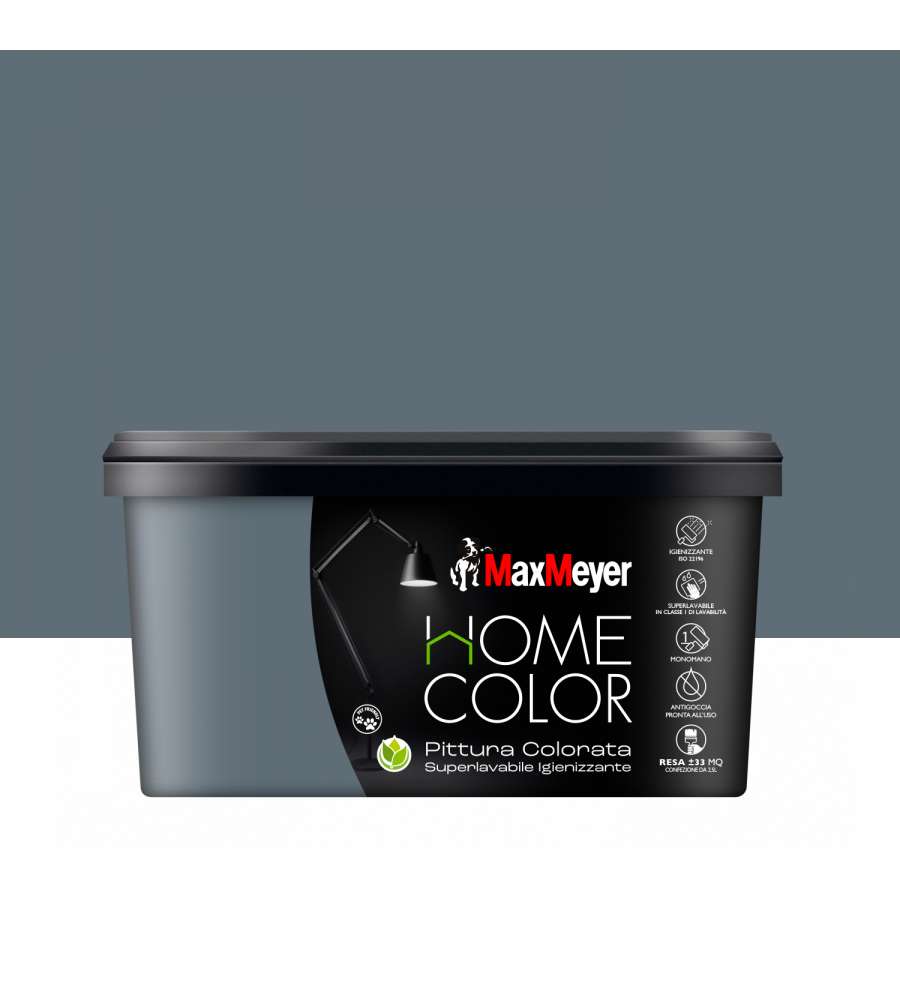 Descrizione: Pittura murale superlavabile MaxMeyer Home Color, 2,5L, colore Grattacielo. Alta resistenza, igienizzante e inodore. Finitura opaca, facile applicazione, copertura eccellente. Ideale per interni.