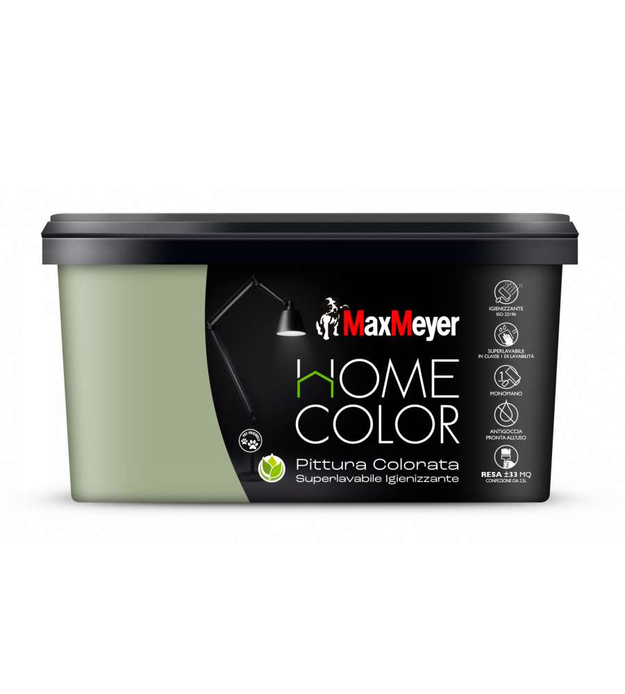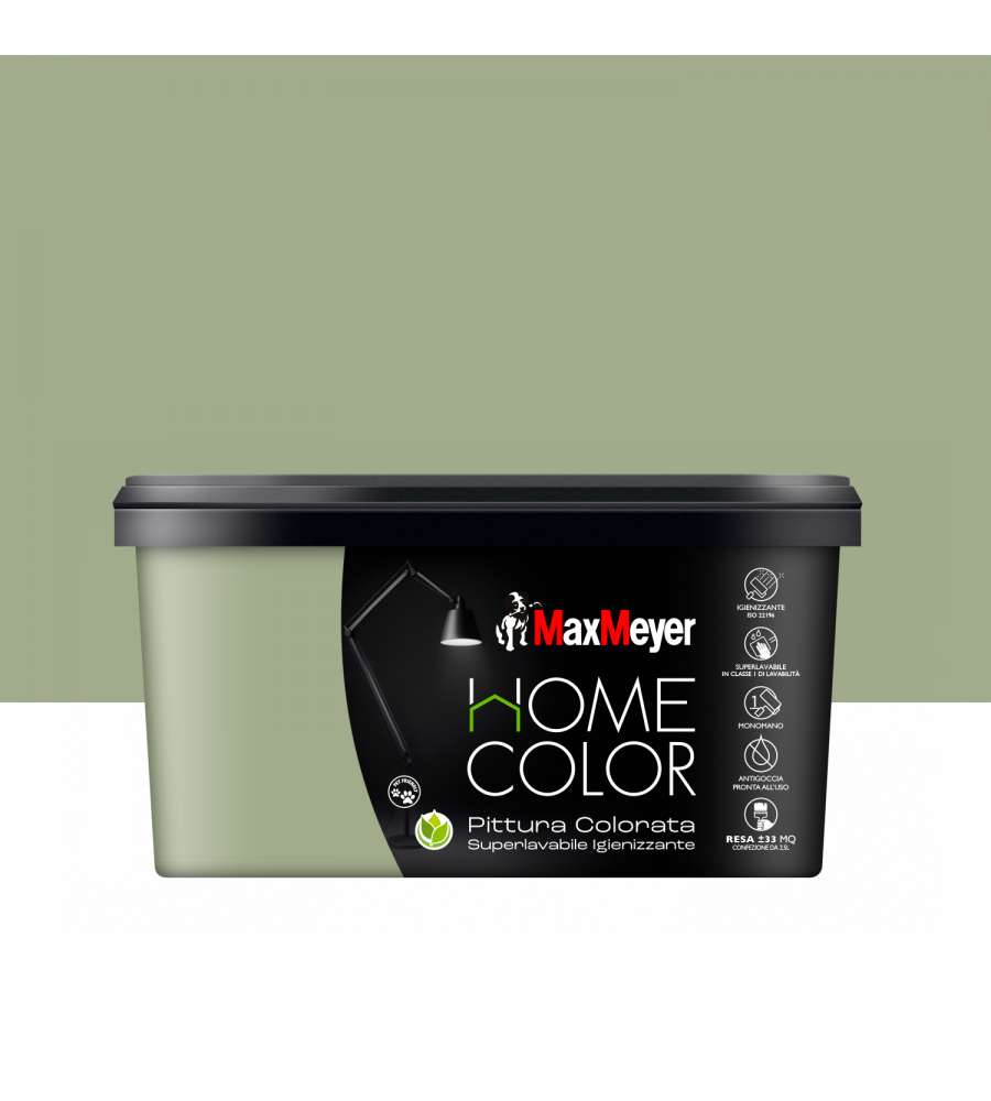 Descrizione: Pittura superlavabile MaxMeyer Home Color, 2,5L, colore oliva. Alta resistenza, finitura opaca e igienizzante, ideale per interni. Ottima copertura e facile applicazione, perfetta per ogni ambiente.